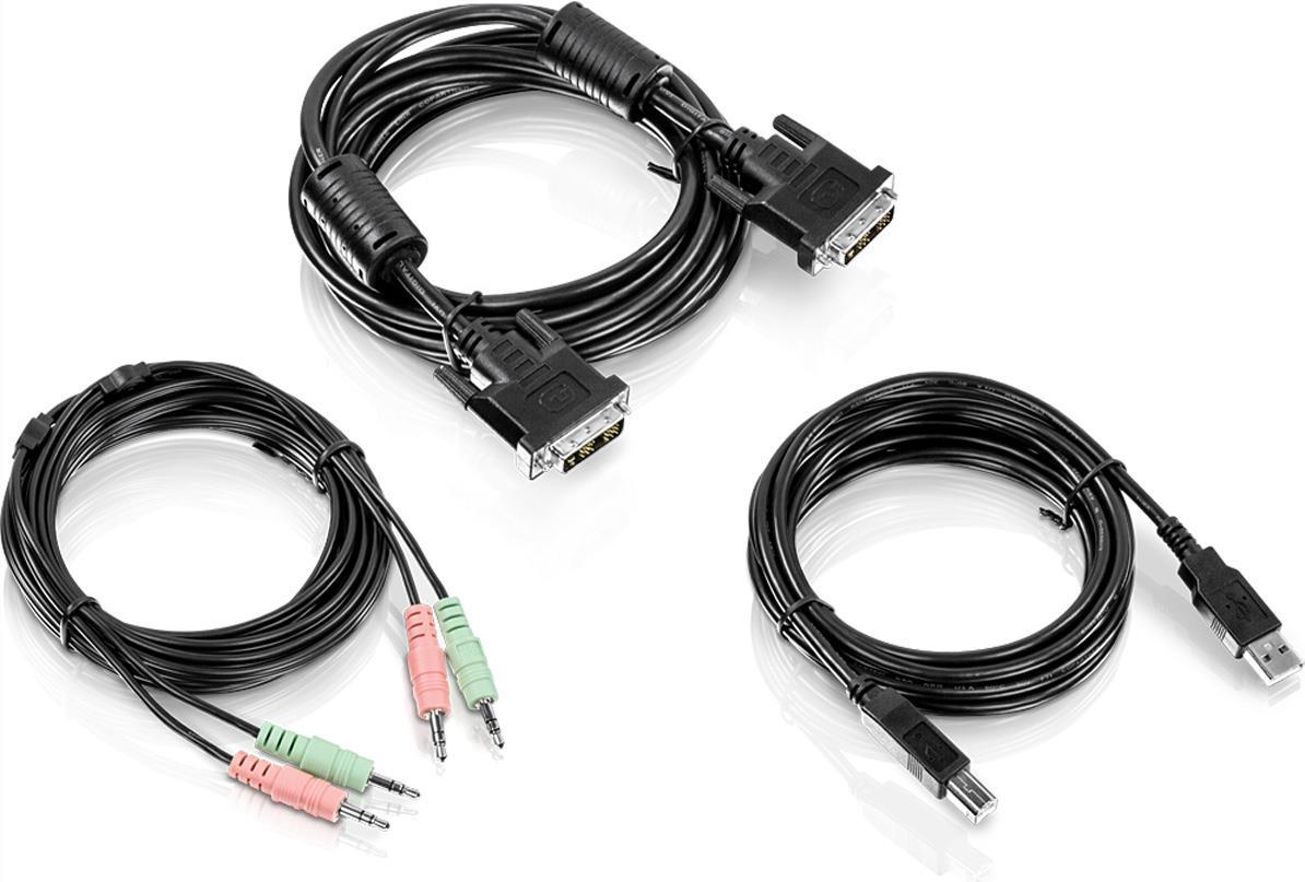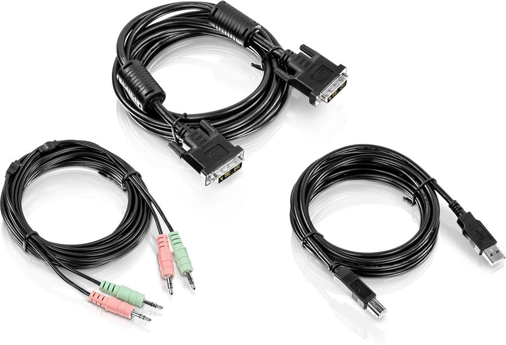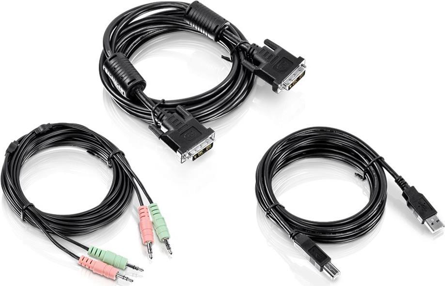 | Informationen zu den Bestandteilen des Kabelsatzes | 1 x USB-Kabel - 4-polig USB Typ A bis 4 PIN USB Typ B - 3 m 1 x Audiokabel - Mini-Phone Stereo 3,5 mm (männlich) x 2 bis Mini-Phone Stereo 3,5 mm (männlich) x 2 - 3 m 1 x DVI cable - DVI-I (Stecker) bis DVI-I (Stecker) - 3 m |