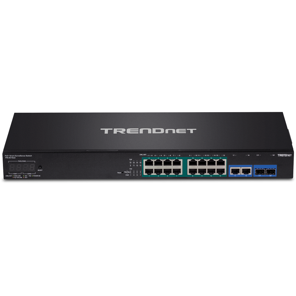 Ein LED-Display an der Vorderseite zeigt die gesamte PoE-Leistung, die verfügbare Leistung und die Leistung pro Anschluss an. Der Smart Surveillance Switch von TRENDnet verfügt über eine einfach zu bedienende webbasierte Verwaltungsoberfläche. Zu den erweiterten verwalteten Switch-Funktionen gehören IPv6, LACP zur Erhöhung der Bandbreite, VLANs für virtuelle Gerätegruppierungen, QoS zur Verkehrspriorisierung, IGMP Snooping für Multicast-Verkehr und Portbandbreitenkontrolle.