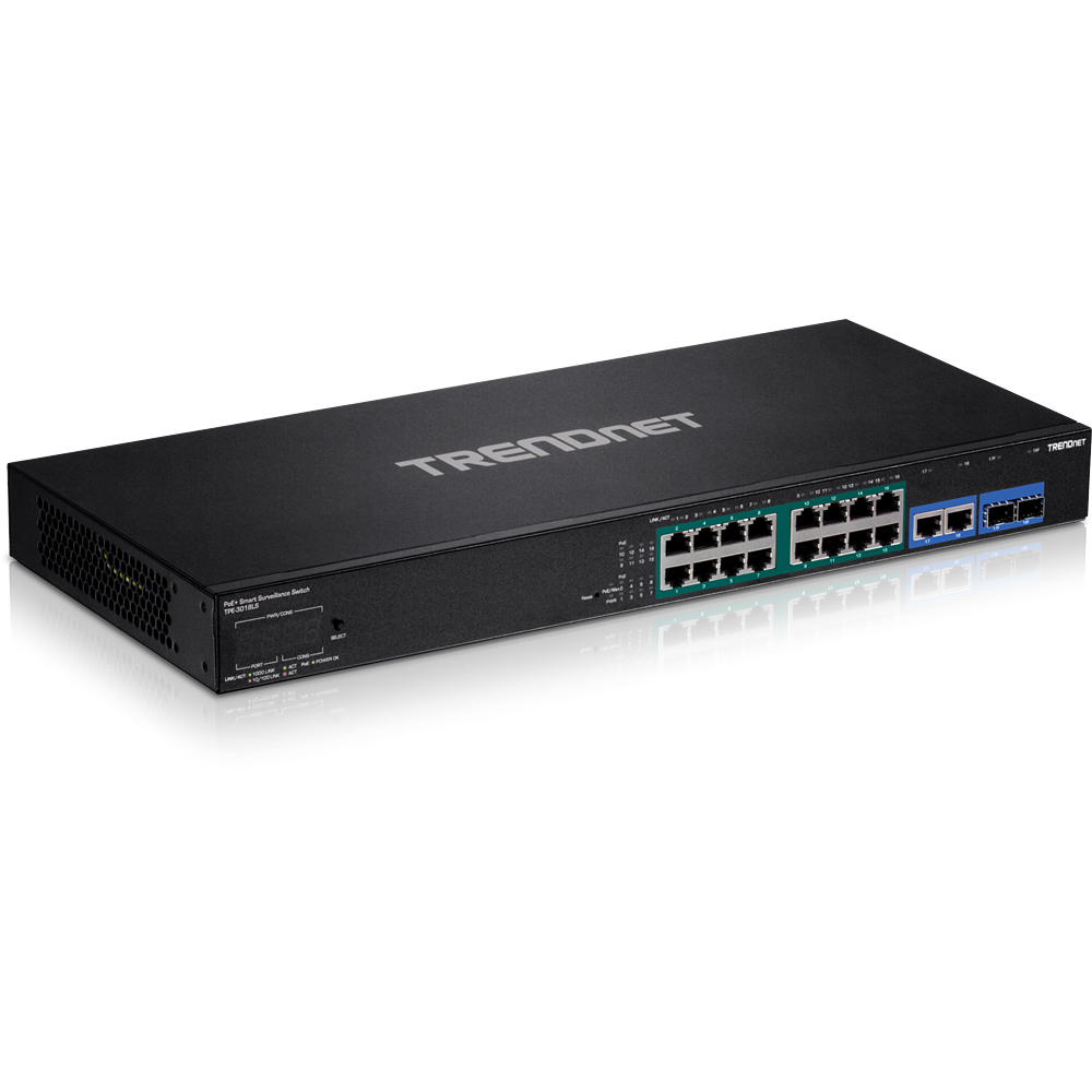 Der TRENDnet Gigabit PoE+ Smart Surveillance Switch ist sowohl mit PoE+-Ports als auch mit Standard-Gigabit-Ports ausgestattet; SFP-Steckplätze unterstützen Langstrecken-Glasfaser-Netzwerkanwendungen. Als zusätzliche Funktion unterstützt der Smart Surveillance Switche auch die PoE+-Vernetzung über große Entfernungen bis zur doppelten Entfernung im Vergleich zum aktuellen PoE-Standard (200 m entfernt).