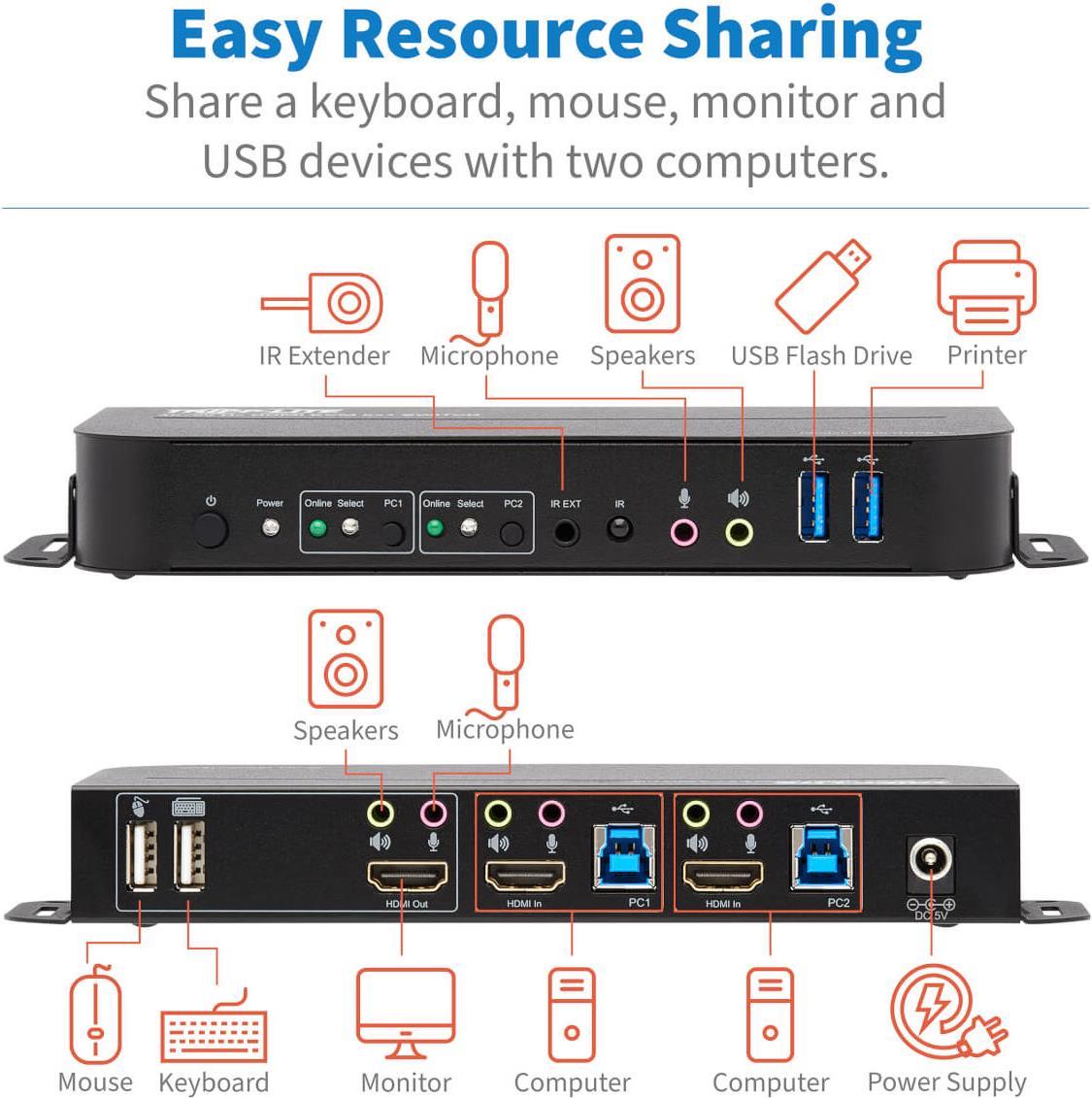 | Produktbeschreibung | Tripp Lite HDMI KVM, 2-Port 4K 60Hz 4:4:4, HDR, HDCP 2.2 Support, IR Remote and USB Cables - KVM-/Audio-/USB-Switch - 2 Anschlüsse |