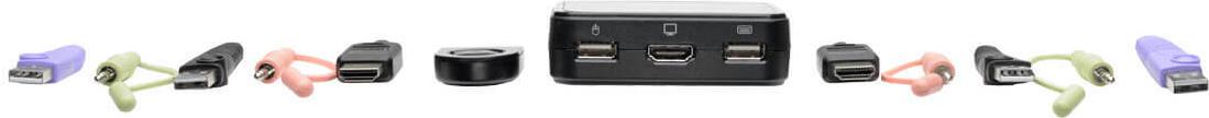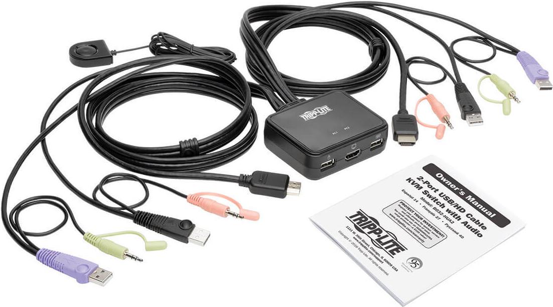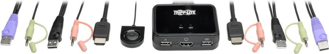 | Produktbeschreibung | Tripp Lite 2-Port USB/HD Cable KVM Switch with Audio/Video, Cables and USB Peripheral Sharing - KVM-/Audio-/USB-Switch - 2 Anschlüsse |