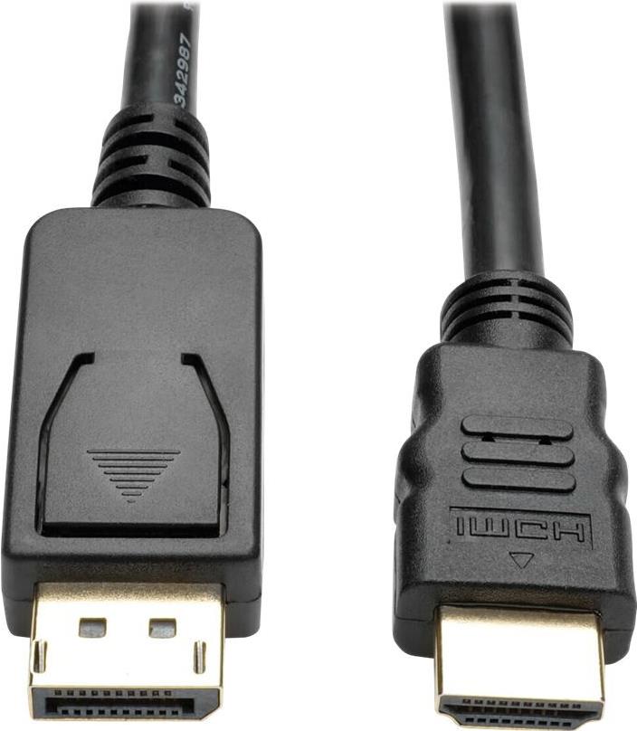 Das Eaton Tripp Lite Series DisplayPort 1.2 to HDMI Active Adapter Cable bietet eine zuverlässige Verbindung für die Übertragung von High-Definition-Video und -Audio. Dieses aktive Adapterkabel mit einer Länge von 6 Fuß unterstützt 4K-Auflösung und sorgt für gestochen scharfe und klare Bilder. Mit seinen verriegelten Steckern bietet es eine sichere Verbindung, so dass es sich während des Gebrauchs nicht so leicht lösen kann. Die vergoldeten Anschlüsse verbessern die Signalintegrität, während die Zugentlastung die Lebensdauer dieses wichtigen Zubehörs verlängert.Separate DisplayPort- und HDMI-Anschlüsse machen dieses Kabel vielseitig für verschiedene Geräte einsetzbar und gewährleisten die Kompatibilität mit modernen Bildschirmkonfigurationen. Darüber hinaus ist das Kabel HDCP-kompatibel und ermöglicht so die reibungslose Wiedergabe geschützter Inhalte. Dieses Produkt erfüllt die RoHS-Normen und bestätigt damit seine umweltfreundliche Herstellung. Erleben Sie nahtlose Konnektivität mit dem Adapterkabel von Eaton Tripp Lite, das sich sowohl für den professionellen als auch für den privaten Gebrauch eignet.Produkttext[/head]Senden von hochwertigen DisplayPort v1.2 Audio-/Video-Signalen an ein HDMI-DisplayVerbindet den DisplayPort-Computer mit einem HDMI-fähigen Monitor, Projektor oder FernsehgerätIdeal für die Anzeige von Videos auf einem großen Monitor oder einer digitalen TafelHDMI und verriegelnde DisplayPort-SteckerKein separater Adapter erforderlichDynamische, überlegene VideoqualitätUnterstützt UHD-Videoauflösungen von bis zu 3840 x 2160 (4K x 2K) bei 24/25/30 HzUnterstützt Audio und HDCPAktiver Adapter konvertiert sowohl Single-Mode- als auch Dual-Mode-(DP ++) DisplayPort-AusgabePerfekt für die Verwendung mit Grafikkarten wie AMD Eyefinity, die keine DP++ Signale ausgebenÜberlegene Werkstoffe für überlegene LeistungVergoldete Anschlüsse und Kontakte für hervorragende LeitfähigkeitEinrastender DisplayPort-Stecker für eine sichere VerbindungIntegrierte Zugentlastung für eine lange Lebensdauer[head]Hauptmerkmale