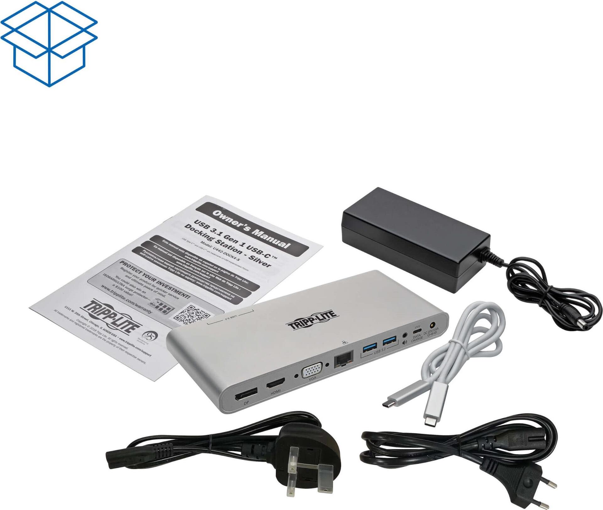 | Produktbeschreibung | Tripp Lite USB-C Dock, Triple Display - 4K HDMI/DisplayPort, VGA, USB 3.2 Gen 1, USB-A/USB-C Hub, GbE, 100W PD Charging, International Power Cables - Dockingstation - USB-C 3.2 Gen 1 / Thunderbolt 3 - VGA, HDMI, DP - 1GbE |