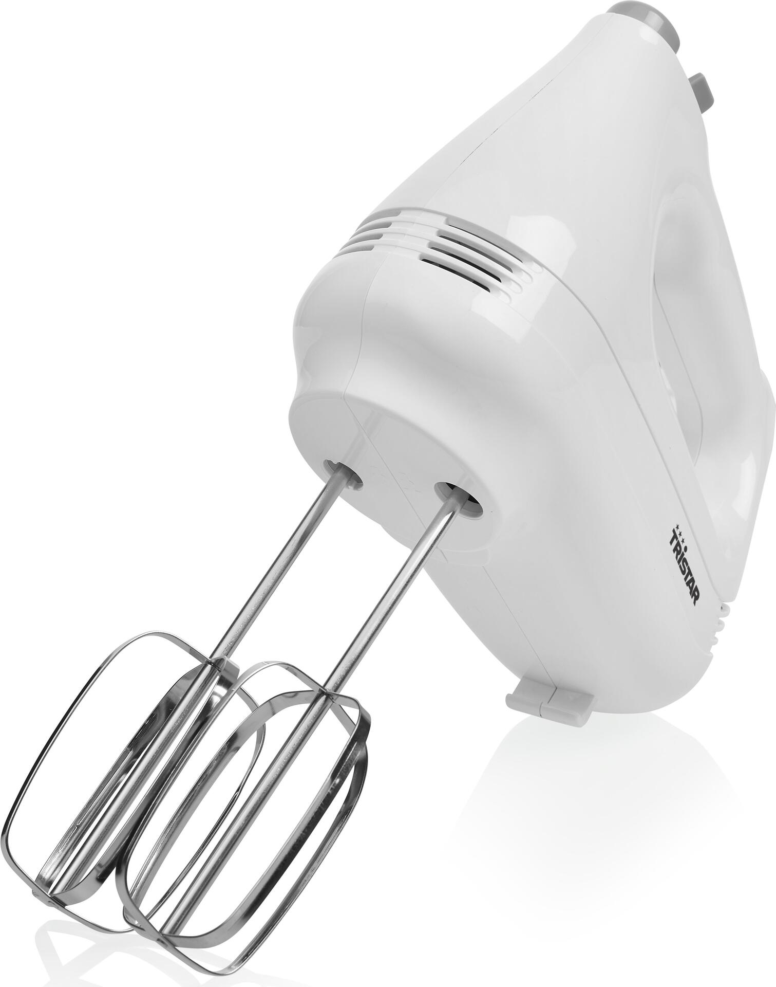 Tristar MX-4202 Handmixer. Typ: Handmixer, Produktfarbe: Weiß, Mixerfunktionen: Schlagen, Kneten. Gehäusematerial: Kunststoff, Material Messer: Edelstahl. Leistung: 200 W, AC Eingangsspannung: 230 V, AC Eingangsfrequenz: 50 Hz. Gewicht: 785 g. Verpackungsbreite: 90 mm, Verpackungstiefe: 194 mm, Verpackungshöhe: 180 mm (MX-4202)