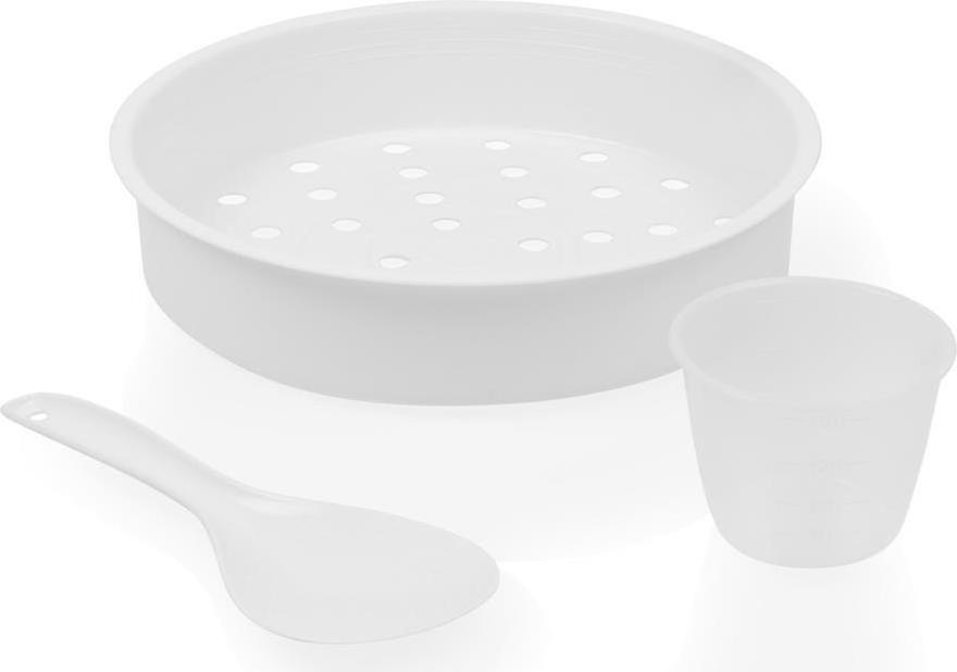 Tristar RK-6138 Dampfgarer mit Display, Reiskochfunktion, Antihaftbeschichtung, mit Messbecher, Timerfunktion Stahl (RK-6138) (geöffnet)