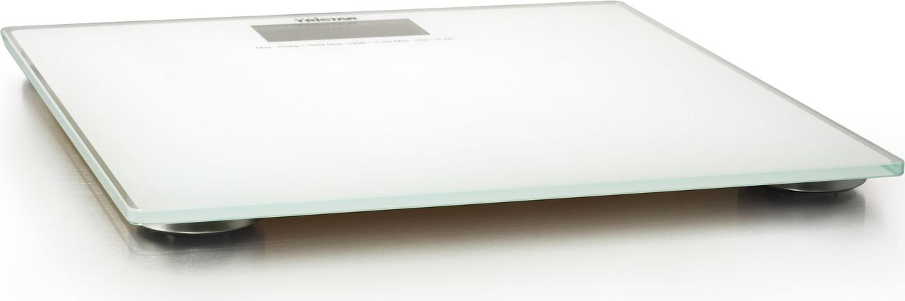 Elegante schmale Waage mit Glas. Mit einem deutlich ablesbarem Display. Das Gerät wiegt präzise bis auf 0,1kg.