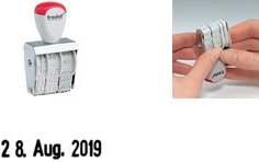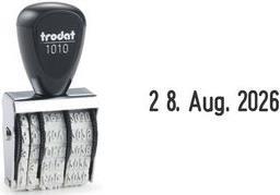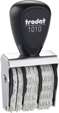 trodat Datumstempel 1010, Abdruckgröße: 4 x 26 mm ------------- für den Markt: D / A / L / CH --------------- Monate in Buchstaben, Schrifthöhe: 4 mm, vernickeltes Metallgehäuse, Kunststoffräder zum Verstellen des Datums, mit Kunststoffgriff (WEDO: 51 1010/trodat: 1010)