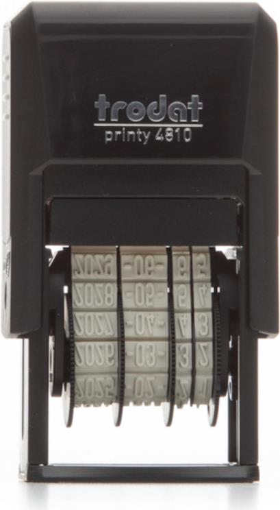trodat Datumstempel Printy Dater 4810, selbstfärbend, SB- ---------------- Für den Markt: D / A / L / CH ------------- Verpackung, Abdruckmaße: 3,8 x 20 mm, Schrifthöhe: 3,8 mm eingebautes schwarzes Stempelkissen, passendes Ersatz stempelkissen: 6/4910, Maße: (B)41 x (T)24 x (H)76 mm (WEDO: 51 48101/trodat: 48101)
