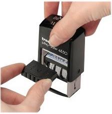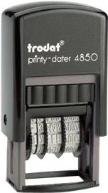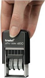 trodat Datumstempel Printy Dater 4850L \"GEBUCHT\", blau/rot ---------------- für den Markt: D / L / A / CH ------------- mit Textplatte, selbstfärbend, Abdruckgröße: 23 x 12 mm, Schrifthöhe: 3,8 mm, Text in blau, Datum in rot, Datumein- stellung mittels Antriebsrädern, passendes Ersatzstempel- kissen: 6/4850/2 (WEDO: 51 4853/trodat: 4850/L3)