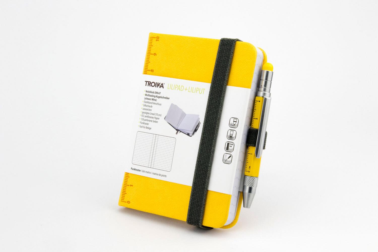 Punktlandung. Unser kleinster Multitasking-Kugelschreiber LILIPUT hat jetzt einen starken Partner: LILIPAD, das große kleine Notizbuch im Format DIN A7. Mit geprägtem 10-cm-Lineal und Elastikband-Verschluss, Block mit ...