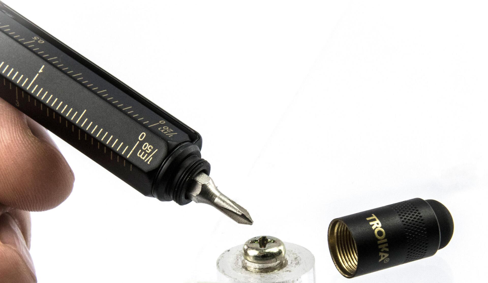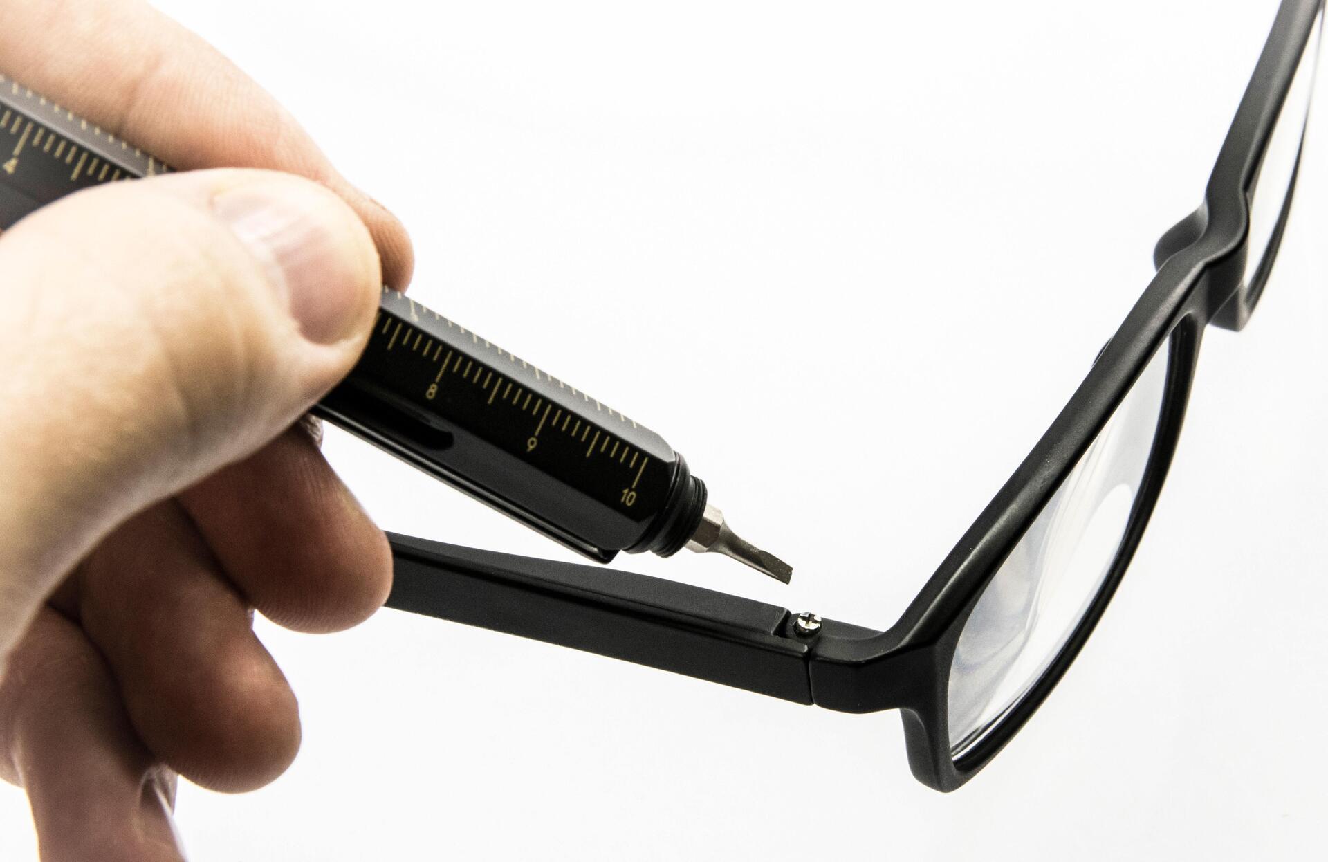 Der Multitasking-Kugelschreiber im Abendanzug: mattschwarz und dezentes Gold – für einen stilvollen Auftritt auf jedem Schreibtisch.Multitasking-Kugelschreiber , Zentimeter-/Zoll-Lineal, 1:20/1:50 Skala, Wasserwaage, ...