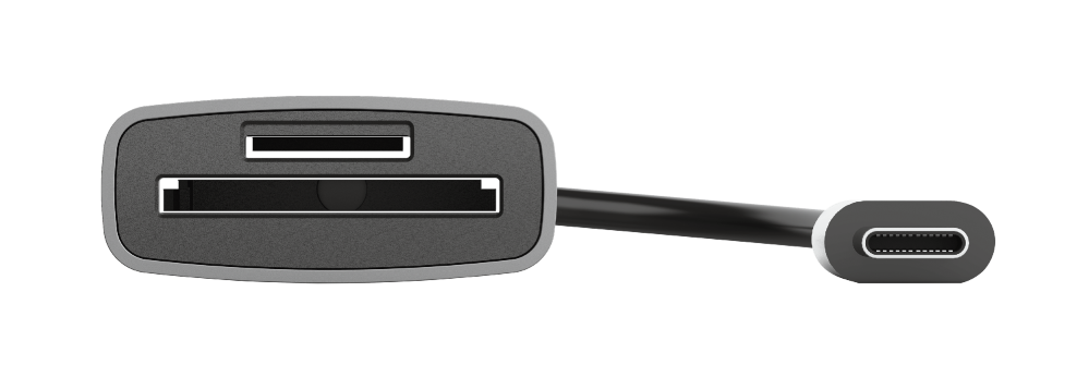 Kompaktes Kartenlesegerät für (micro)SD-Karten mit USB-C-Anschluss und Aluminiumgehäuse
