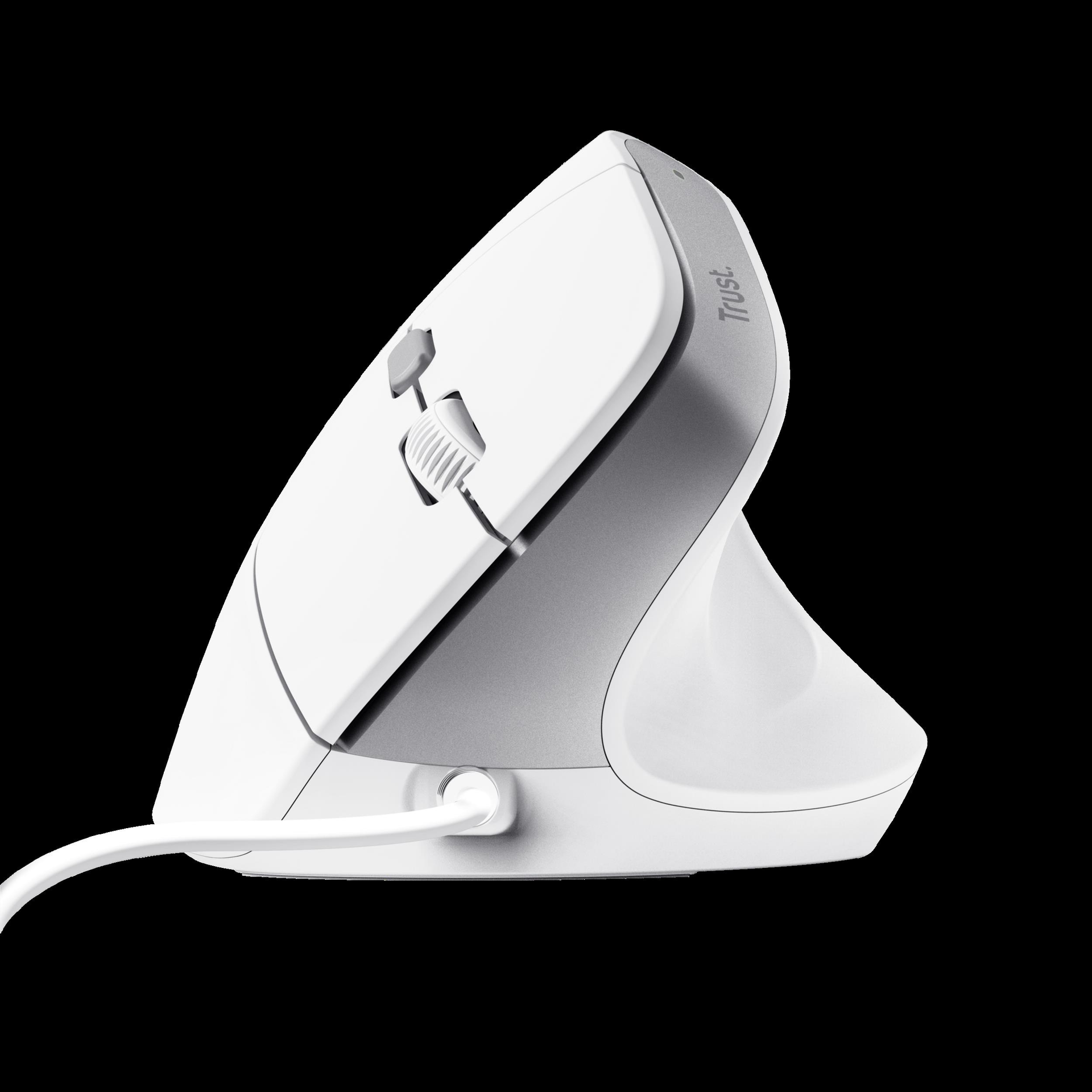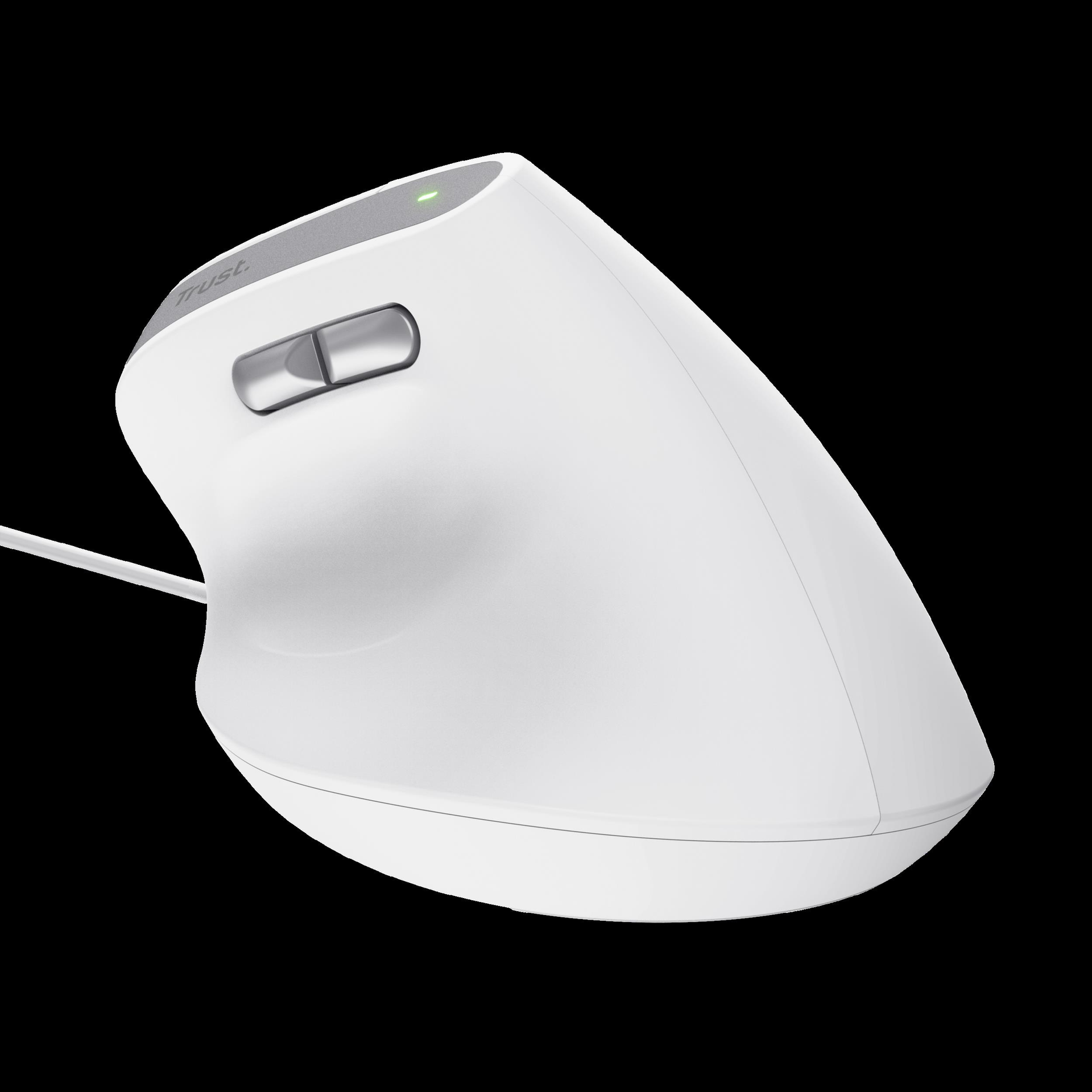 Trust Bayo II - Vertikale Maus - ergonomisch - Für Rechtshänder - optisch - 6 Tasten - kabelgebunden - USB - weiß (25397)