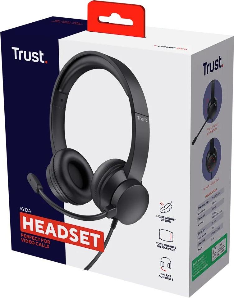 Das Trust Ayda-Headset wurde für eine zuverlässige Kommunikation und einen hohen Tragekomfort entwickelt und verfügt über ein am Bügel befestigtes Mikrofon. Mit einem Frequenzgang von 20 - 20.000 Hz ist die Audioqualität klar und realistisch, was es zu einer idealen Wahl für Computeranwendungen macht. Die 1,8 m lange Kabelverbindung sorgt für Stabilität während des Gebrauchs, während die einstellbare Lautstärkeregelung und die Stummschaltfunktion für zusätzlichen Komfort sorgen. Das Headset ist aus strapazierfähigem ABS-Kunststoff gefertigt und verfügt über bequeme Ohrpolster aus Kunstleder, die auch bei längerem Tragen im Beruf oder in der Freizeit verwendet werden können. Der Neodym-Magnet verbessert die Klangausgabe und sorgt für ein Stereoerlebnis mit einer Empfindlichkeit von 95 dB und einem maximalen Schalldruckpegel von 90 dB.