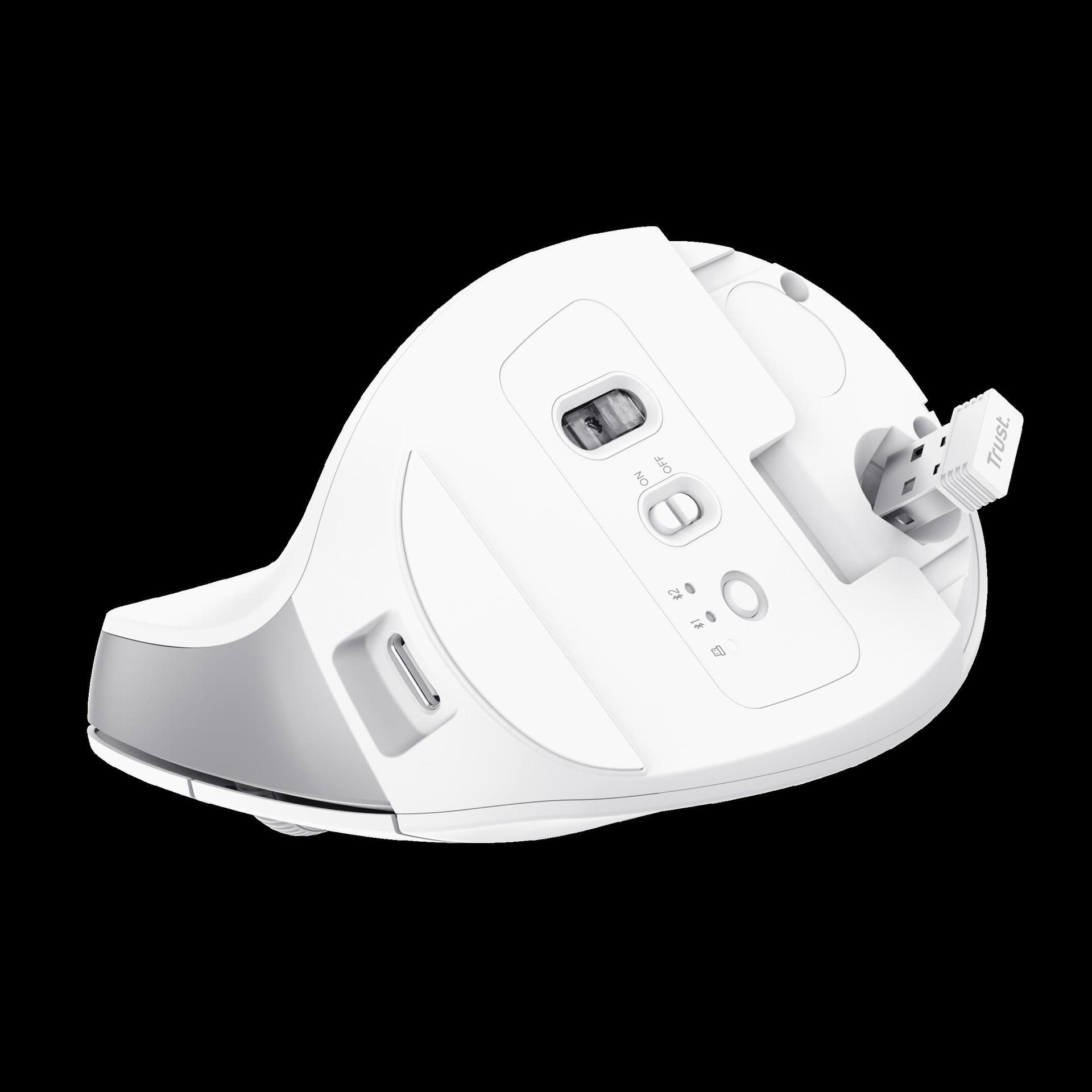Trust Bayo+ - Vertikale Maus - für mehrere Geräte - ergonomisch - Für Rechtshänder - optisch - 6 Tasten - kabellos - 2,4 GHz, Bluetooth - kabelloser Empfänger (USB) - weiß (25399)
