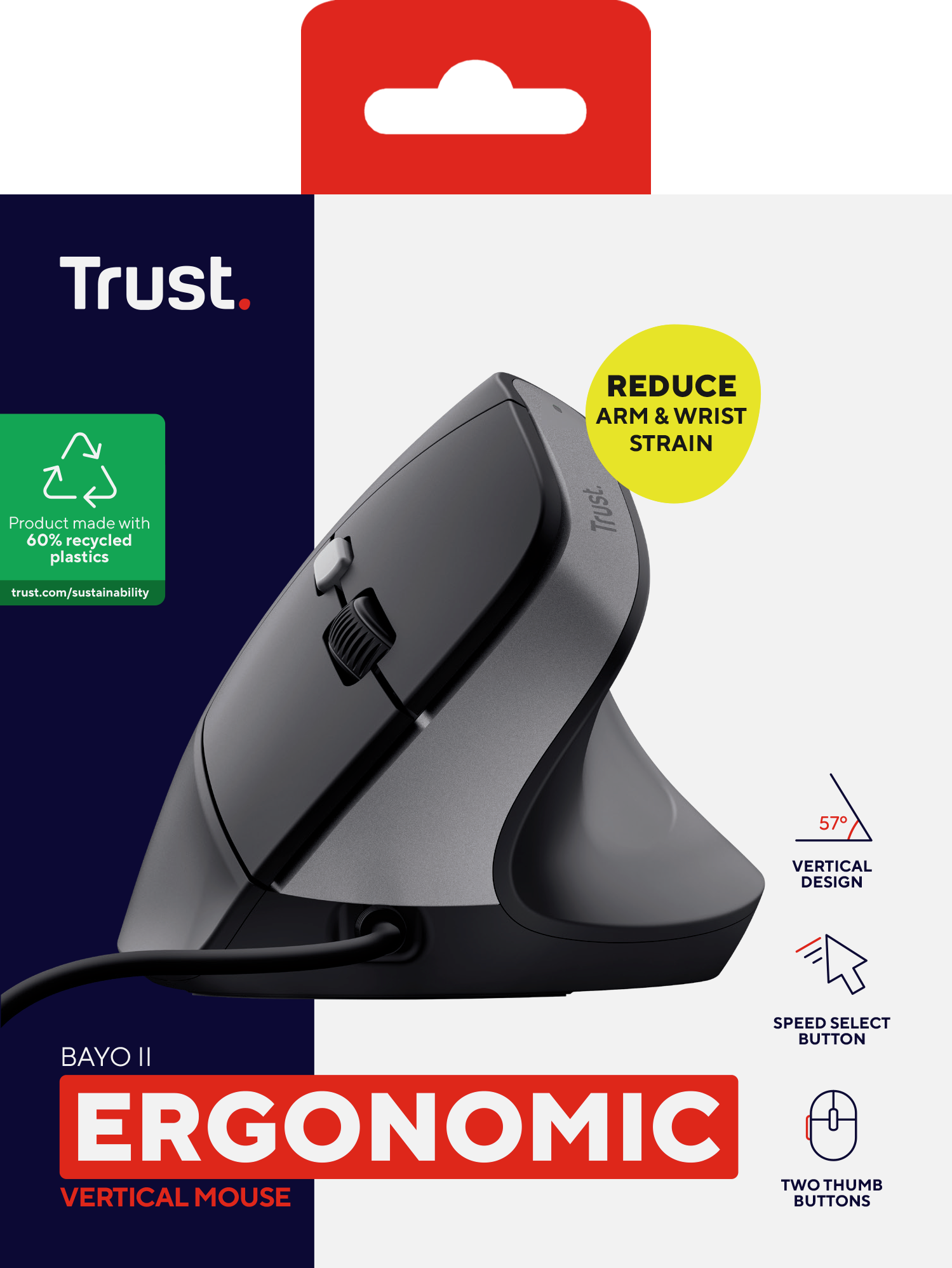 Trust Bayo II - vertikale Maus - USB-A - Schwarz |