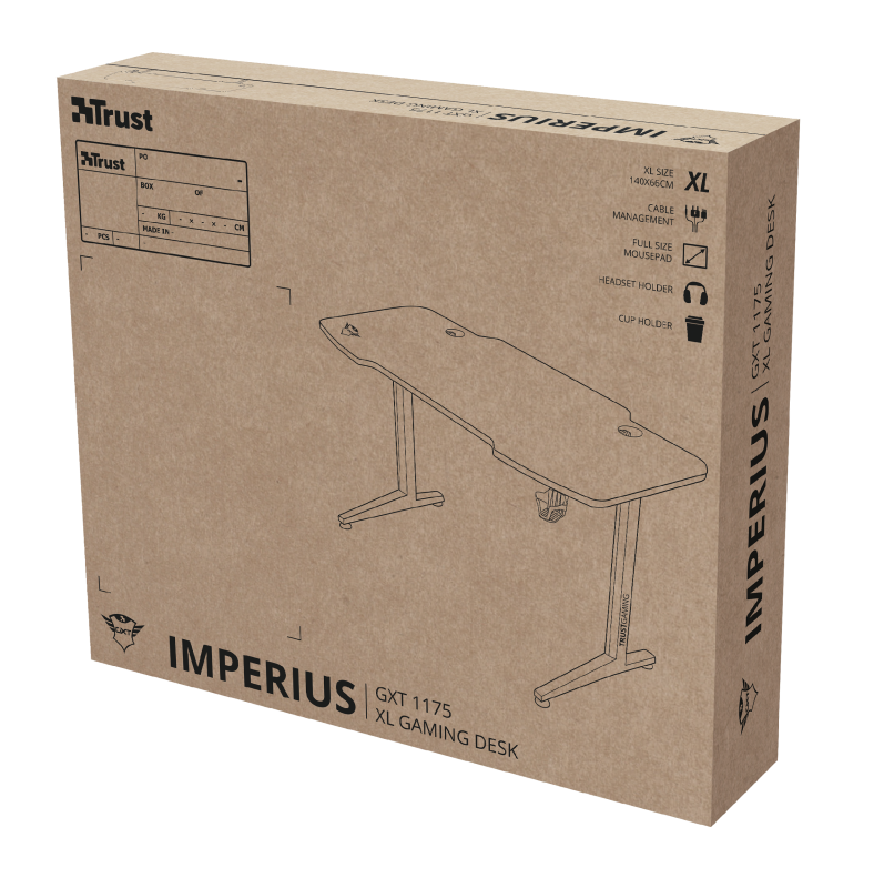 Schalte deinen Gaming-PC ein, melde dich bei deinem Lieblingsspiel an und zeige, was du kannst. Der Trust Imperius ist deine solide Basis beim Aufbau deines Online-Imperiums. Eine große Ablagefläche, ein integriertes Kabelmanagementsystem und eine Tischoberfläche, die vollständig als Mauspad verwendet werden kann - diese Merkmale machen deinen Gaming-Tisch zu deiner optimalen Kommandozentrale.