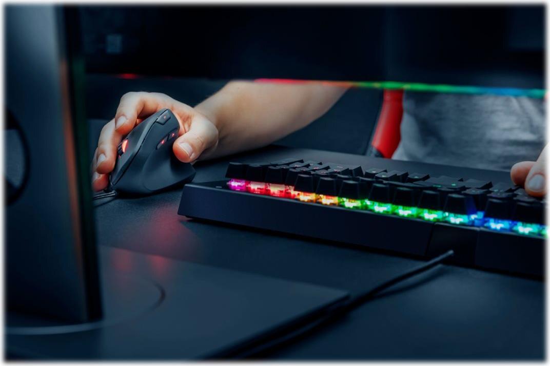 Vertikale Gaming-Maus mit ergonomischem Design für reduzierte Beanspruchung von Arm und Handgelenk.