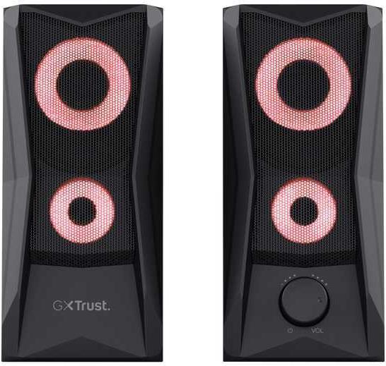 Die Trust GXT 606 JAVV Lautsprecher liefern Audio, das für den PC-Einsatz konzipiert ist. Mit einem aktiven Verstärkertyp und integriertem Verstärker bieten diese Lautsprecher eine Nennleistung von 3 W und sorgen für klaren Klang bei Musik und Filmen. Die beiden 60-mm-Treiber tragen zu einem Frequenzbereich von 160 bis 20.000 Hz bei, sodass Benutzer ein breites Spektrum an Audiofrequenzen genießen können. Die Touch-Steuerung für Lautstärke und LED-Leuchten verbessern das Erlebnis, da sie die Einstellung bequem und optisch ansprechend machen. Diese Lautsprecher werden über USB mit Strom versorgt und verfügen über ein 18 m langes Kabel. Sie bieten Flexibilität bei der Platzierung und sorgen dank Plug-and-Play-Kompatibilität für eine aufgeräumte Einrichtung.