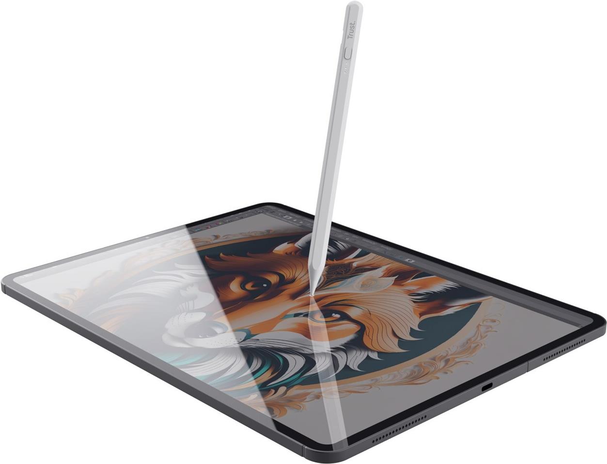 Der Trust Kyna Active Stylus bietet dank seiner kabellosen Verbindung und seinen Funktionen ein nahtloses Schreibgefühl. Dieser auf Komfort und Funktionalität ausgelegte Stylus ist neigungsempfindlich und ermöglicht so eine präzise Steuerung und unterschiedliche Strichstärken. Die Palm Rejection Technology sorgt dafür, dass Benutzer ihre Hand ohne Störungen auf dem Bildschirm ablegen können, was das Zeichnen oder Notieren verbessert.