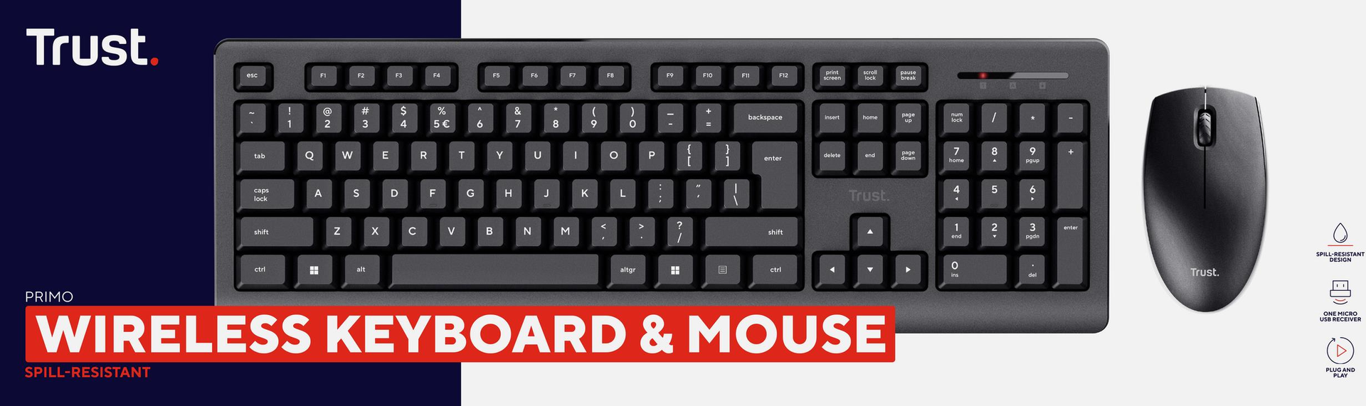 Trust Primo Tastatur Maus enthalten RF Wireless QWERTY US Englisch Schwarz (25347)