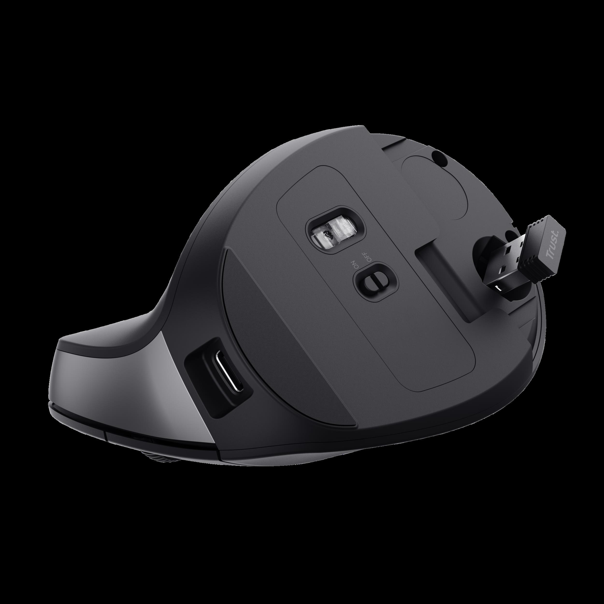 Ergonomische kabellose Maus mit optimalem vertikalen Winkel für eine geringere Belastung der Handgelenke.