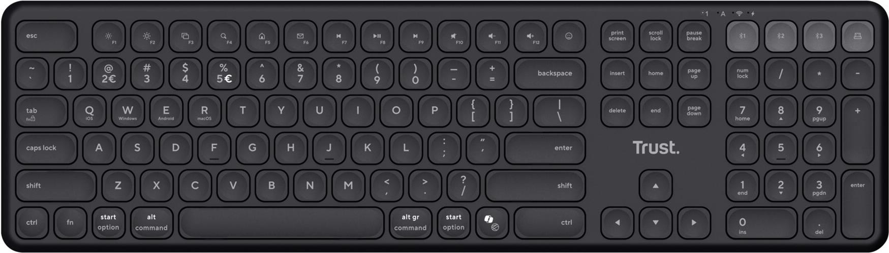 • Trust Vaiya Tastatur Universal USB + RF Wireless + Bluetooth US Englisch Schwarz (25511)