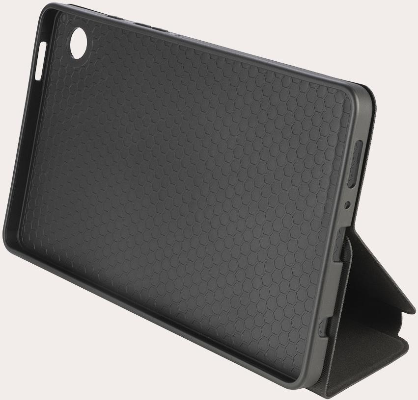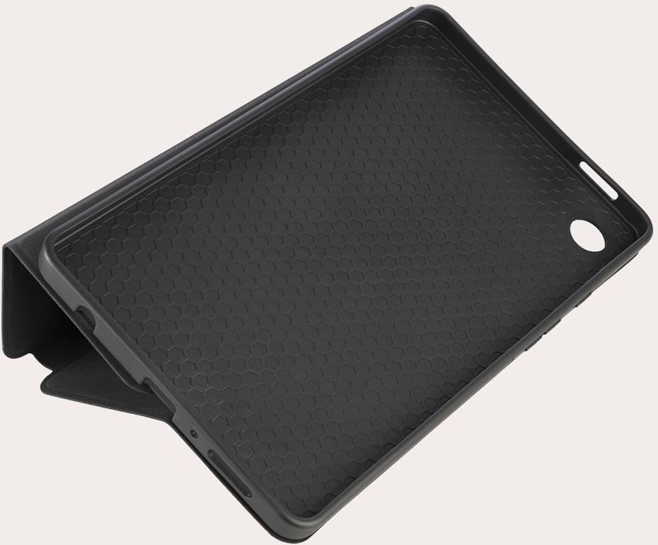 TUCANO Gala Tablet Case für Samsung Galaxy Tab A9 2023 8.7 Zoll schwarz - Voraus - Multifunktionales Hartschalencase aus robusten gummierten Material in 3D Optik. Der faltbare Deckel vereint Schutz- und Standfunktion . Das Außenmaterial ist angenehm griffig - der Innendeckel ist ist mit weicher Mikrofaser bezogen. Der stabile Hartschalenclip ist auf dem rückseitigen Innendeckel teilfixiert und läßt sich so horizontal variabel einstellbar als Stand nutzen. Zum Schreiben läßt sich der Faltbare Deckel aufrollen und bildet dann einen Keil mit relativ flacher Neigung. Beim Öffnen und Schließen des Deckels wird das Gerät aktiviert bzw. in den Ruhemodus versetzt. Alle Anschlüsse sind frei zugänglich. Massgefertigte Hülle Deckel mit Weckfunktion Feste Schale für optimalen Schutz Standfunktion mit variablem Neigungswinkel Kameraöffnung in der Rückseite Integrierte Halteschale Außenmaterial aus PU mit textiler Struktur Freier Zugriff auf alle Bedienfunktionen Faltbarer Deckel Nachhaltige Produktion aus recycltem Material (TAB-GSA923-BK)