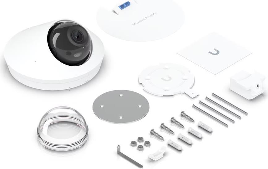 Hartbeschichtete Kuppel, aluminum alloy/polycarbonate housing, Infrarot-Sperrfilter, Farbsteuerung, Helligkeitssteuerung, Schärfeneinstellung, Weißabgleich, Belichtungssteuerung, 2D digital noise reduction (DNR), 3D digitale Lärmminderung, noise reduction by motion, masking, Text-Overlay, ARM Cortex A7 Prozessor, 4-Farben-LED-Licht, Reset-Taste, Power over Ethernet, 102.4° field of view, AI event detection |