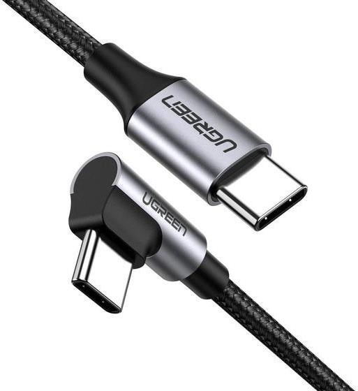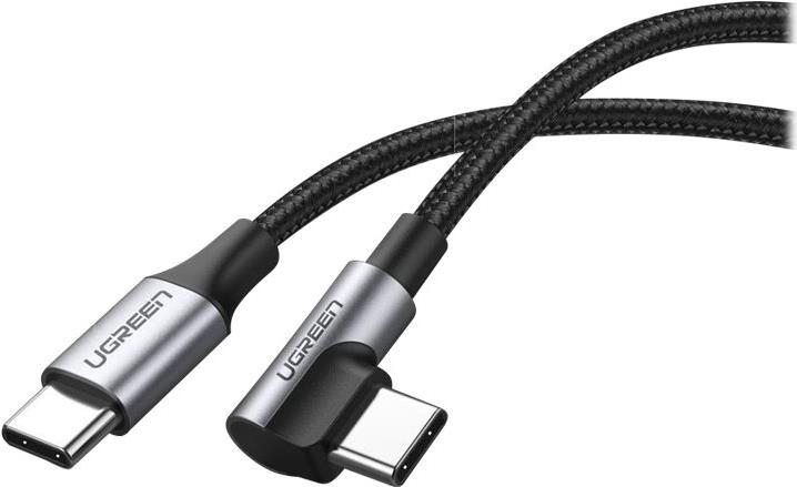 Ugreen - USB-Kabel - 24 pin USB-C (M) nach rechts abgewinkelt zu 24 pin USB-C (M) gerade - USB 2,0 3 A - 1,0m - USB Power Delivery (60W) - Schwarz (50123)