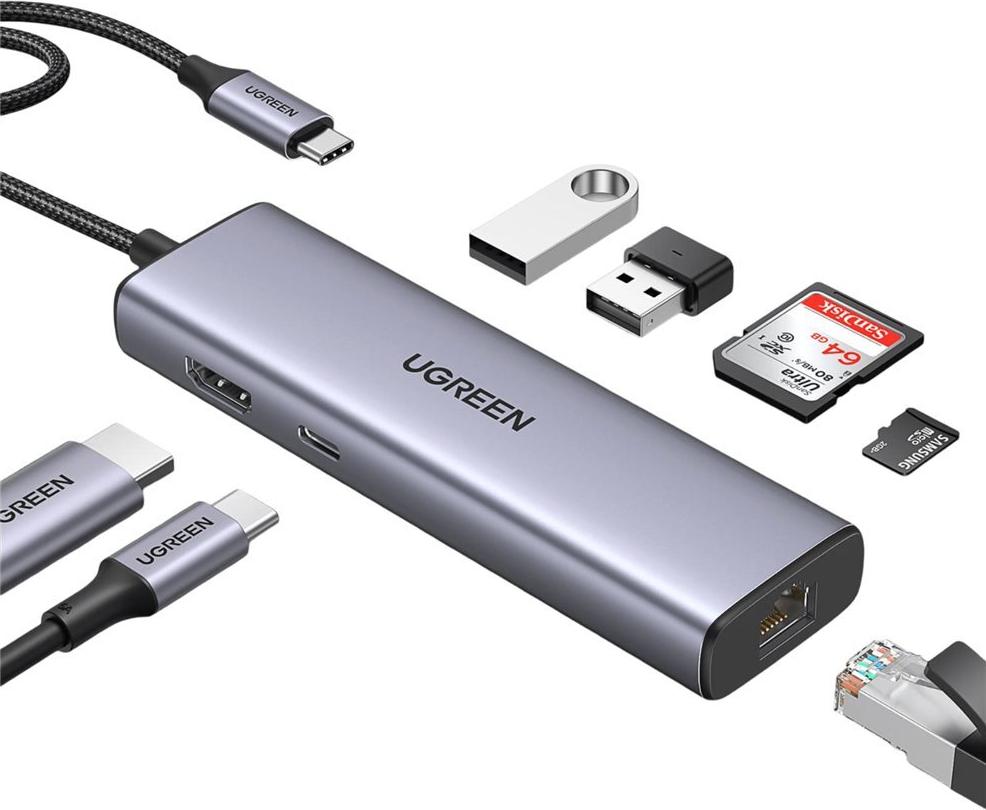 • UGREEN USB-C to 2*USB3.0+HDMI+RJ 45+SD&TF +PD port Hub (90568)