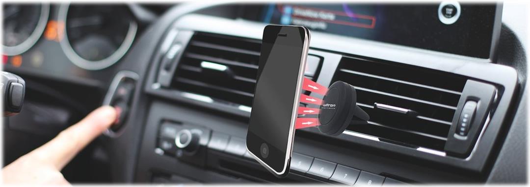 So wird das Smartphone ganz einfach zum Navigationsgerät oder Musik-Streaming-Device: Mit dem ultron magnetic holder werden Geräte bis 250 Gramm am Lüftungsgitter des Autos durch einen Magneten befestigt - es muss also nicht in eine Halterung eingespannt und auf der Windschutzscheibe platziert werden. So wird die Sicht im Cockpit weniger gestört und außerdem unnötige Kratzer oder versehentlich betätigte Tasten durch Haltearme vermieden. Der magnetic car holder misst lediglich 45 x 35 mm und bringt zwei Magnetpads für Smartphones mit.