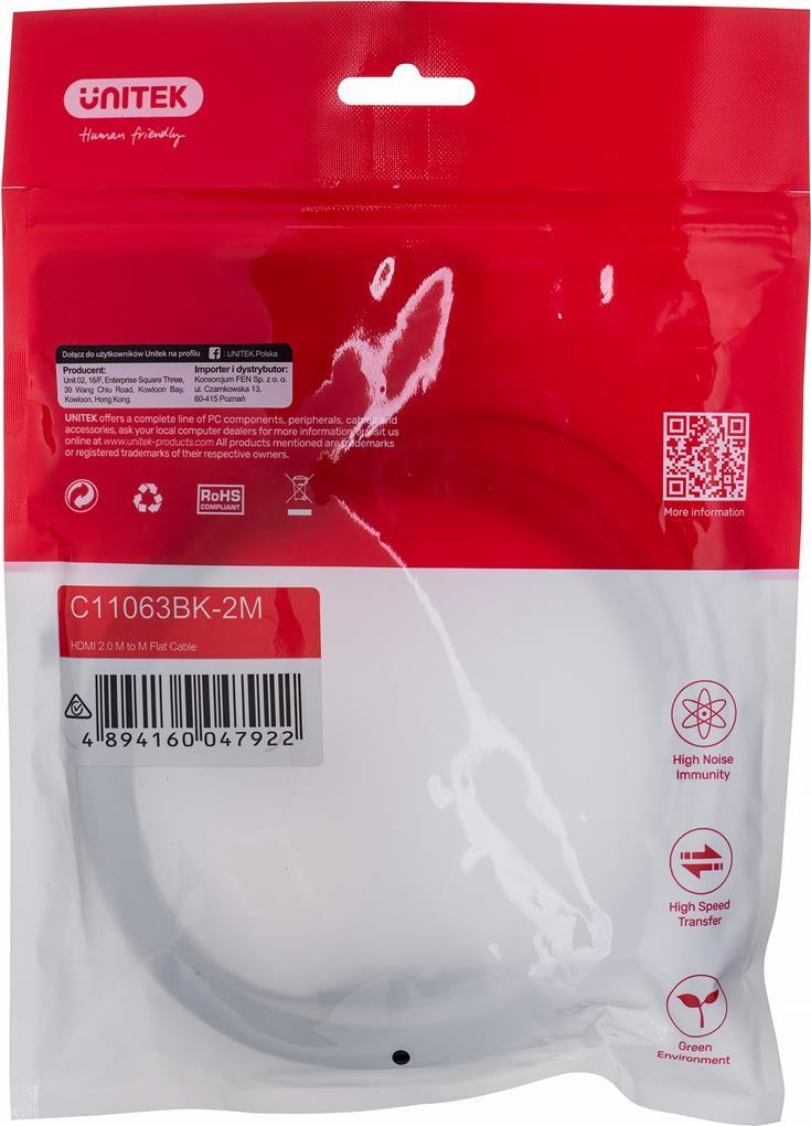 UNITEK KABEL HDMI 2.0 4K60HZ,FLACH,2M,C11063BK-2M (C11063BK-2M)