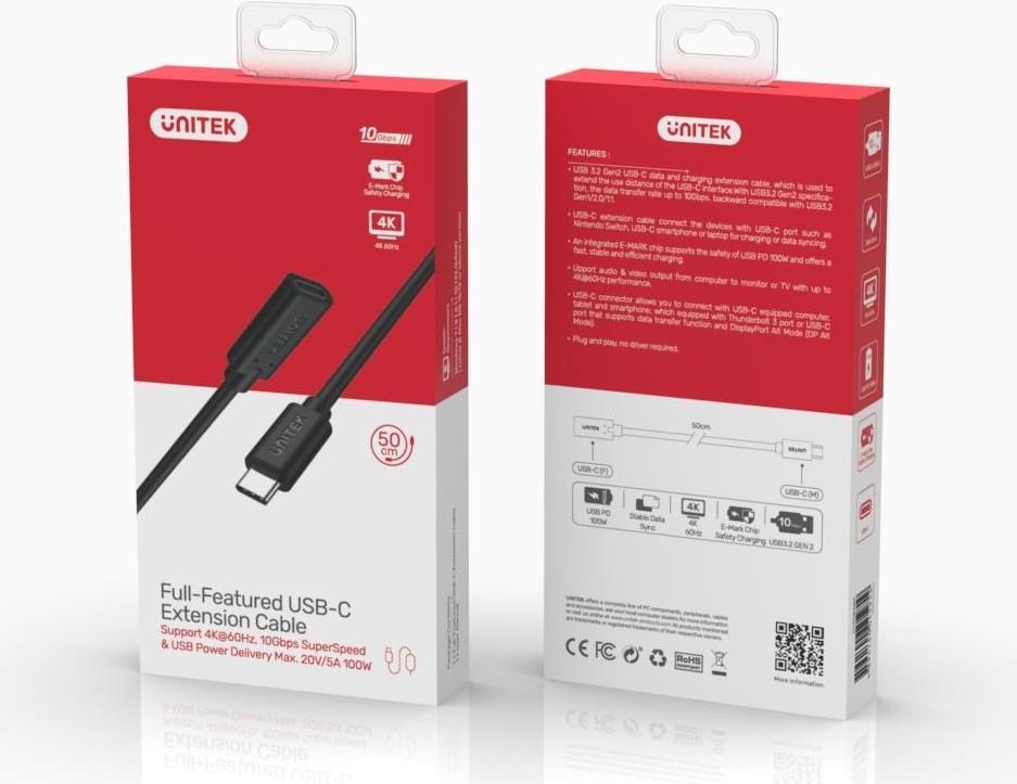 UNITEK C14086BK USB Kabel 0,5 m USB 3.2 Gen 2 (3.1 Gen 2) USB C Schwarz (C14086BK)