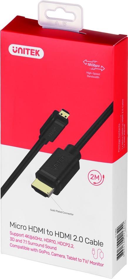 UNITEK Y-C182 HDMI-Kabel 2 m HDMI Typ D (Mikrofon) HDMI Typ A (Standard) Schwarz (Y-C182)