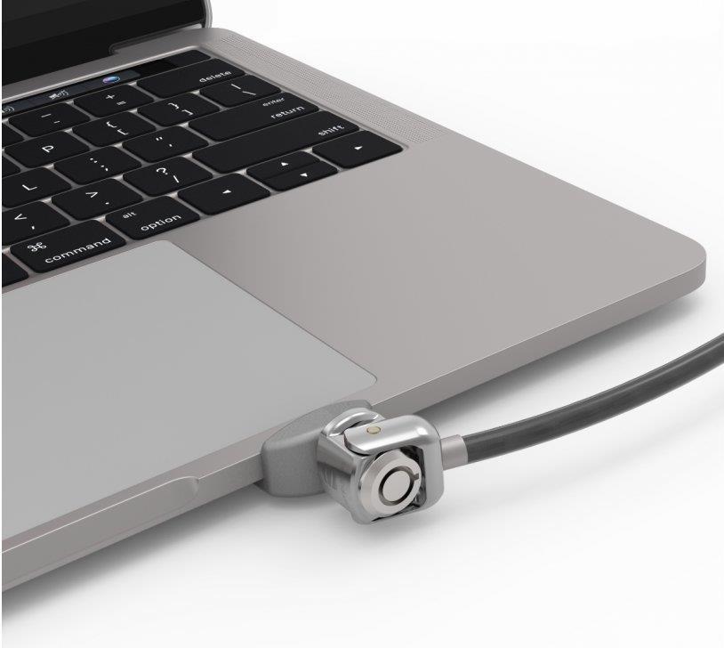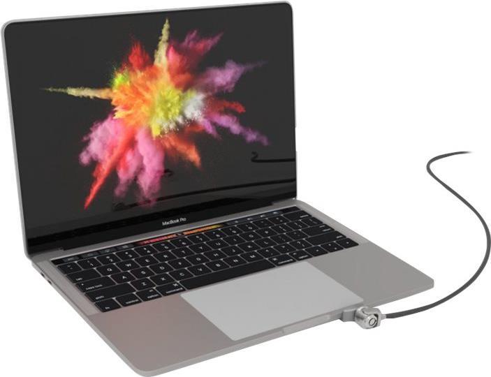 Ledge-Anschluss für Diebstahlsicherung für Macbook Pro mit und ohne Touch Bar für 13" und 15"-Modelle. Durch das einfache Drehen einer Schraube gewinnt Ihr MacBook einen Anschluss für Diebstahlsicherung, der mit Sicherheits-Kabelschlössern kompatibel ist. Das proprietäre Design erfordert weder Klebstoff noch Änderungen am Gehäuse des MacBook Pro und beeinflusst die Funktionalität des MacBooks auf keine Weise. Das schlanke Design dieses extrem sicheren Sicherheitsschloss-Adapters harmoniert perfekt mit der minimalistischen Ästhetik des MacBooks. Mit weniger als 50 g Gewicht ist er äußerst leicht und verändert die Abmessungen des MacBooks kaum, so dass es problemlos in eine Hülle oder Tasche passt. Dazu werden ein Kabelschloss mit Schlüsseln geliefert.