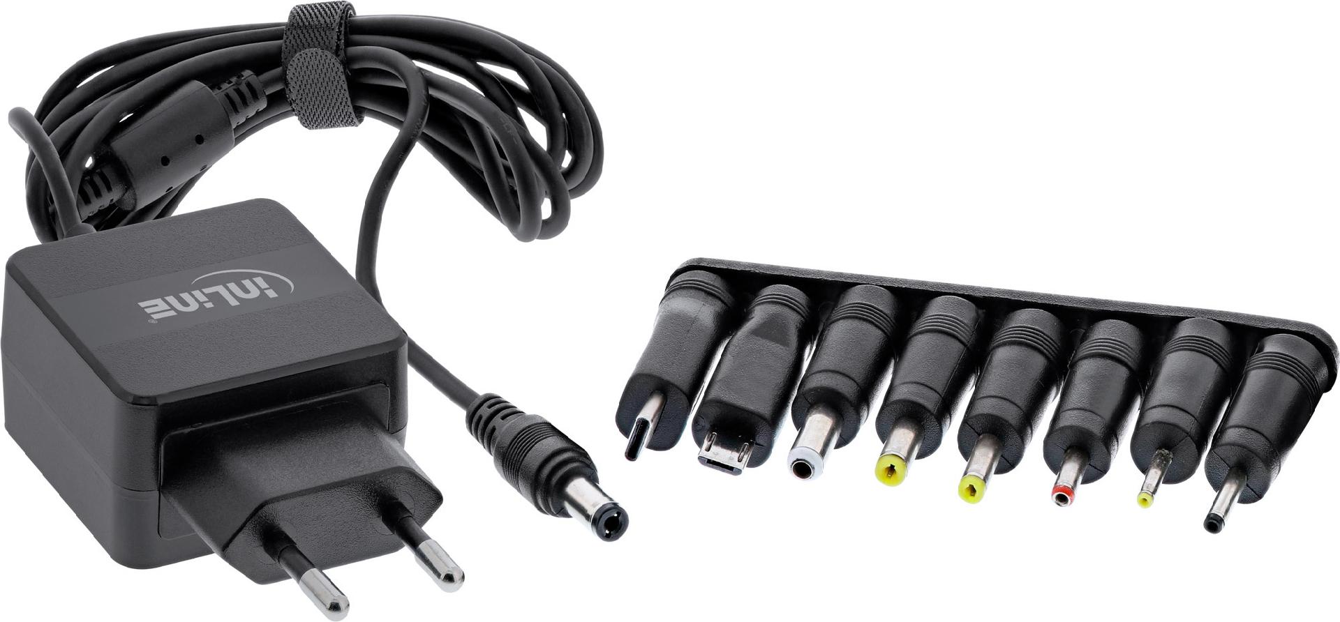 Dieses InLine Universal Netzteil liefert Ihnen immer die passende Stromversorgung. Verschiedene Wechselstecker bieten jedem gängigen Gerät den richtigen Anschluss, z.B. für MP3-Player, Radio, Computerzubehör, Kamera oder Spielzeug.• DC Stecker 5,5 x 2,1mm ist bereits am Kabel befestigt