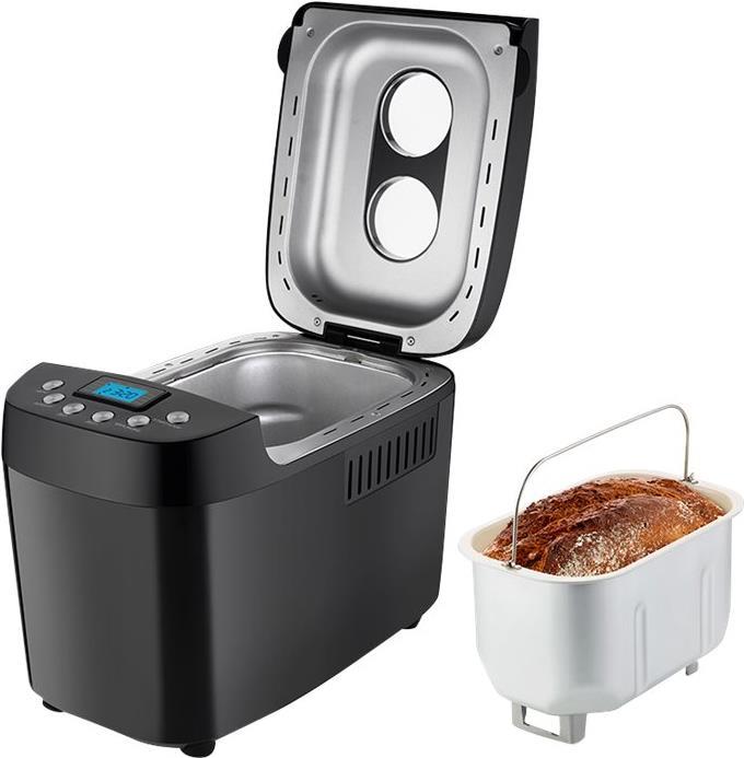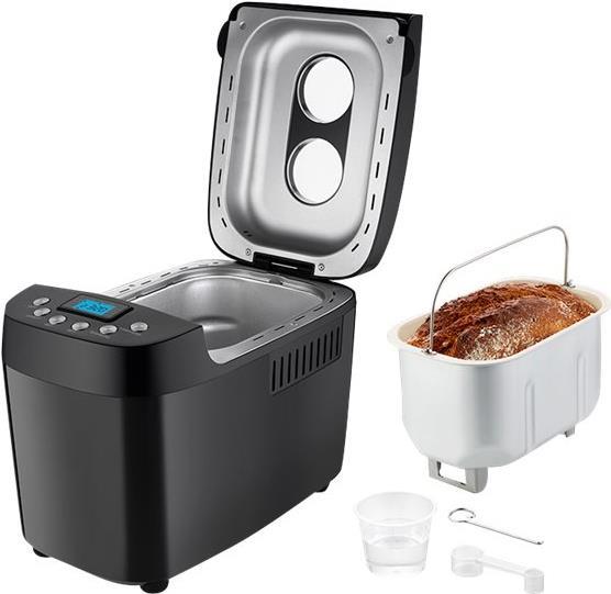 Mit der Zeitwahltaste wird der Start bis zu 15 Stunden vorprogrammiert - und bei Stromausfall gibt es die Netzausfallsicherung für circa 15 Minuten, dann kann es mit dem gewählten Programm weitergehen. Auf dem benutzerfreundlichen, beleuchteten LCD-Display können Brotgröße und Bräunungsgrad festgelegt werden - und selbst bei schwerem Brotteig sorgen die Antirutschfüße vom BACKMEISTER Big White für sicheren Stand. Zum rundum-sorglos-Paket gehören Messbecher und -löffel, 2 Kneter, 1 Hakenspieß, die entnehmbare Backform und eine Bedienungsanleitung mit vielerlei Rezepten.