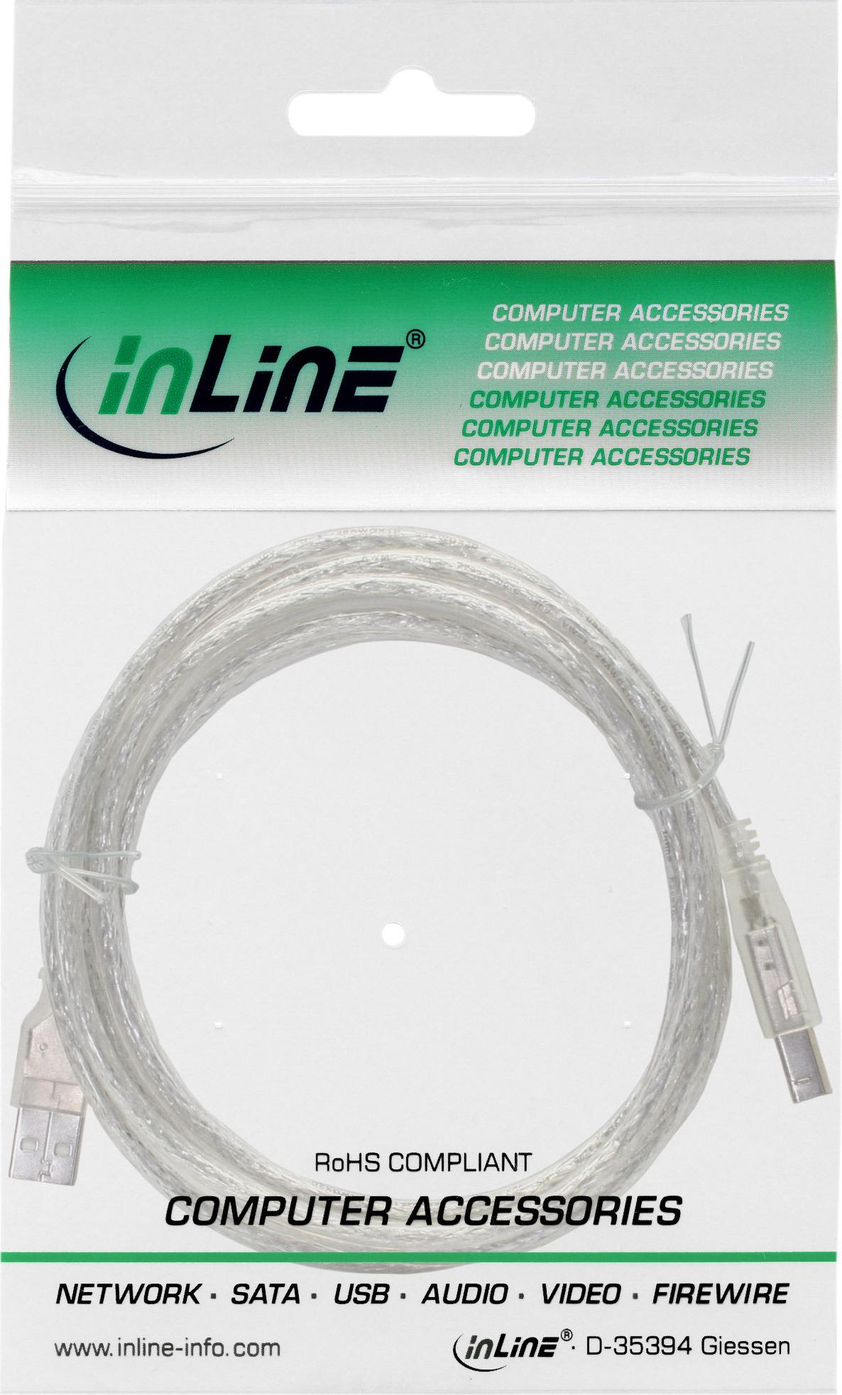 InLine 34503T 0.3m USB A USB B Männlich Männlich Transparent USB Kabel (34503T)