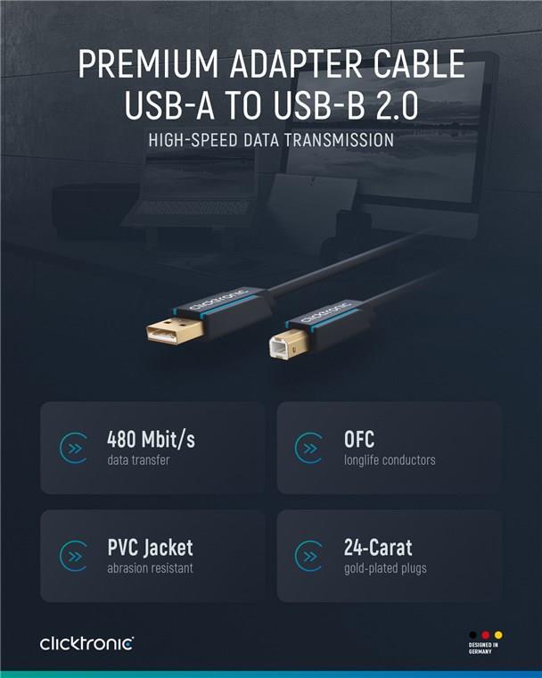 ClickTronic 3m USB 2.0 A/B m/m 3m USB A USB B Blau USB Kabel (70097)