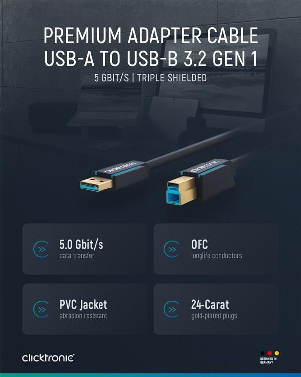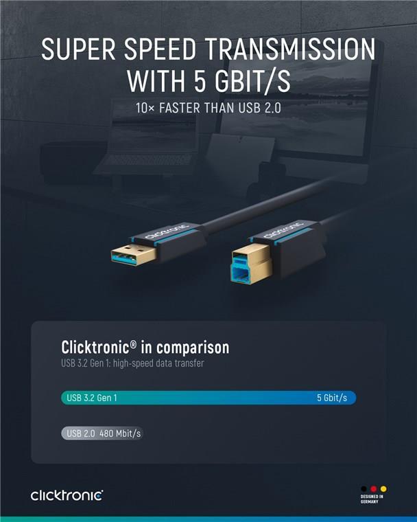 ClickTronic 3m USB3.0 A - B m/m 3m USB A USB B Blau USB Kabel (70093)
