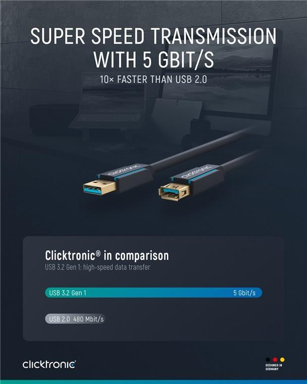 ClickTronic 3m USB 3.0 A/A m/f 3m USB A USB A Blau USB Kabel (70120)