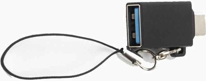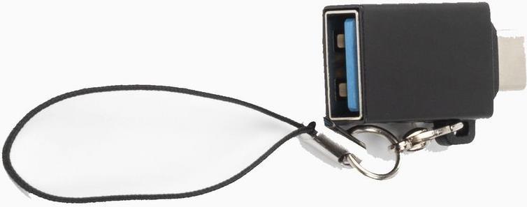 USB-C zu USB3.0 A Adapter M-F mit Kabelschlaufe zur Befestigung des Adapters am Kabelkopf.