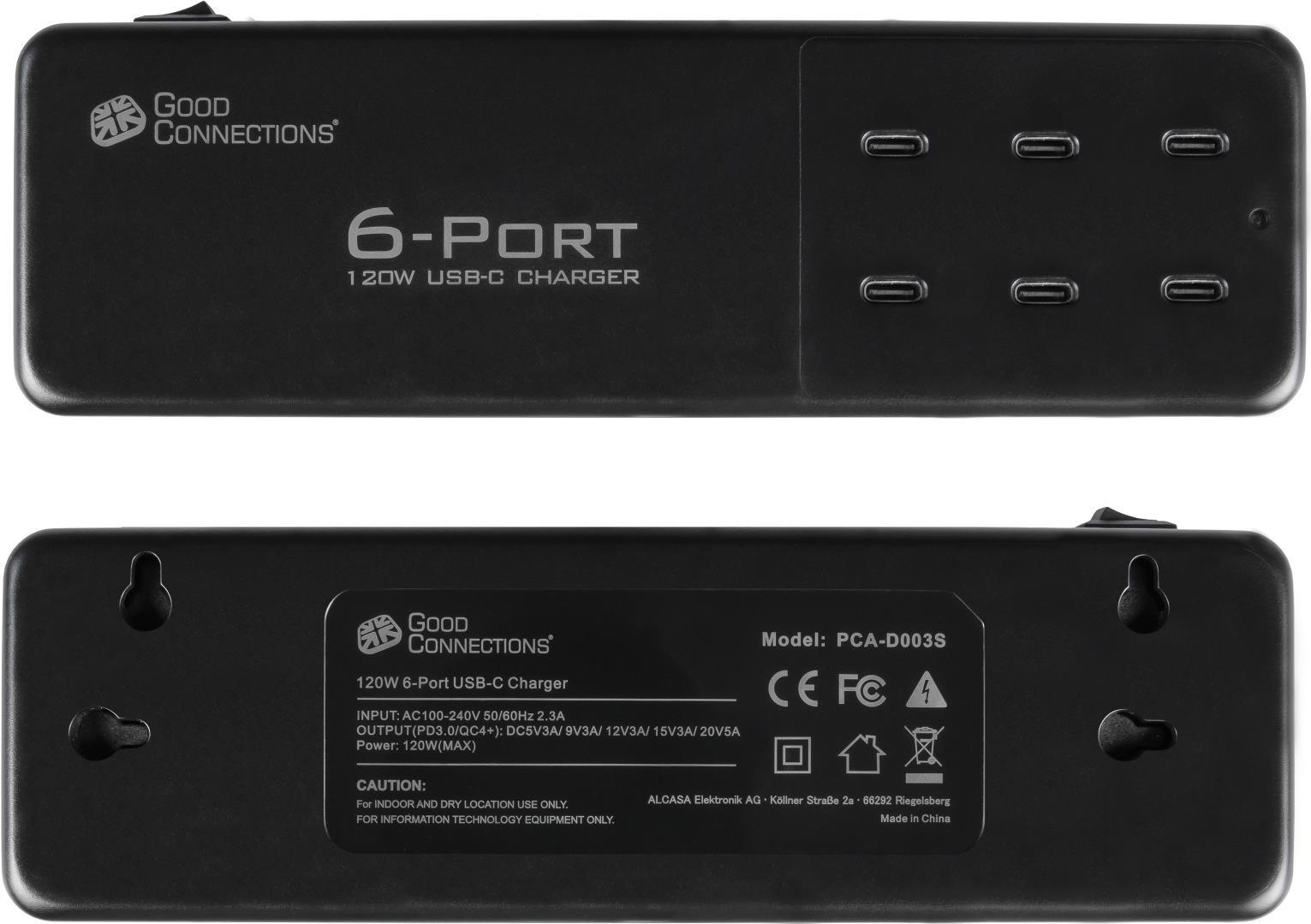 USB-Desktop-Schnellladestation 120W, 6-Port (6x USB-C™), PD 3.0, QC 4+, schwarz, Good Connections® Die Good Connections® USB-Desktop-Schnellladestation ist ein 120W Universal-Netzteil für Smartphones, Tablets, ...