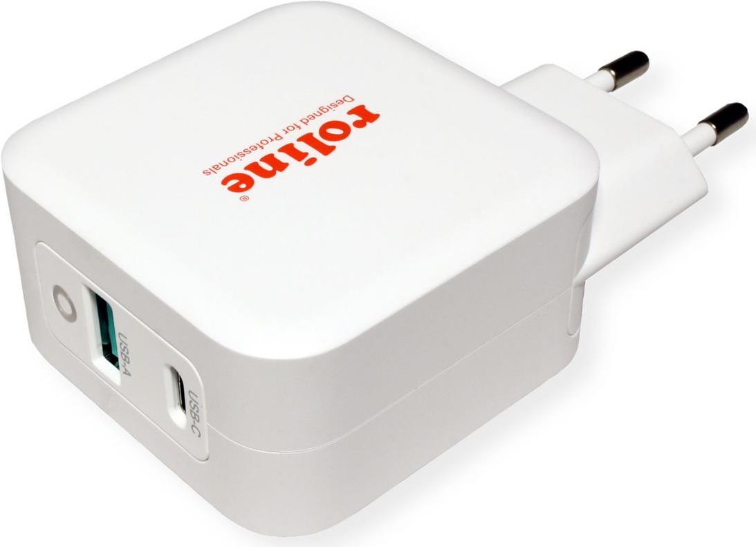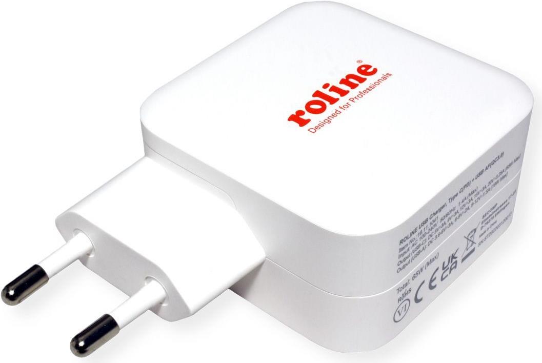 USB Ladegerät mit Euro-Flachstecker mit 1x USB-C Power Delivery und 1x USB-A Quick Charge QC3.0 mit maximal 65W zum Aufladen bzw. für die Spannungsversorgung zweier Geräte gleichzeitig. Für zum Beispiel Smartphone, ...