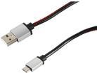 USB Ladekabel, USB-A-Stecker auf USB Micro B Stecker, Leder, schwarz, 2m