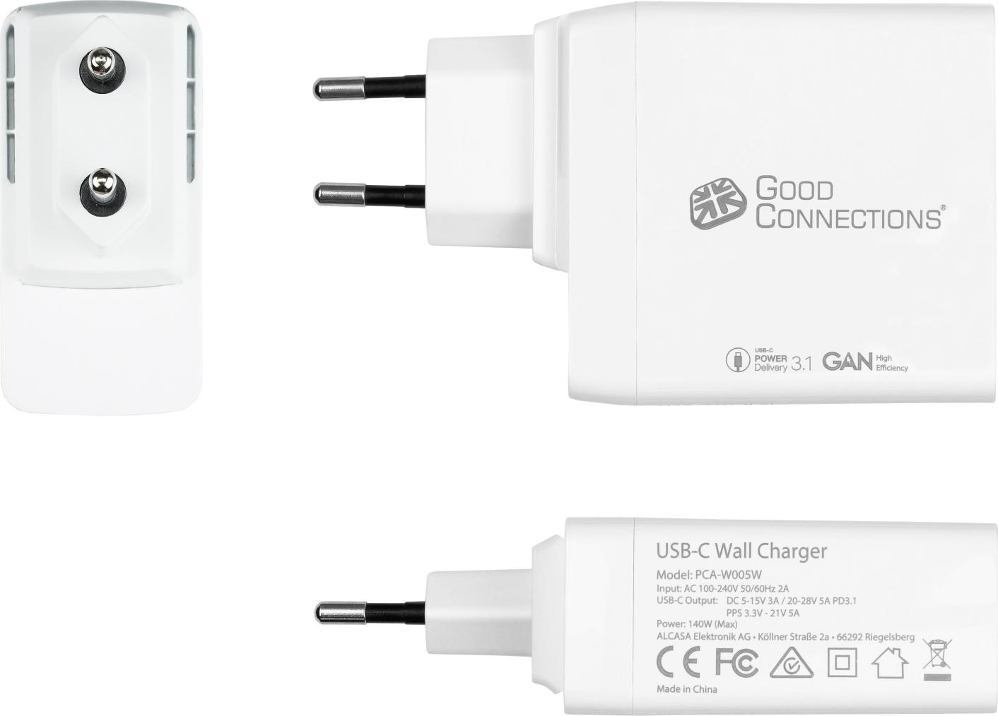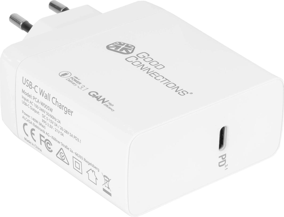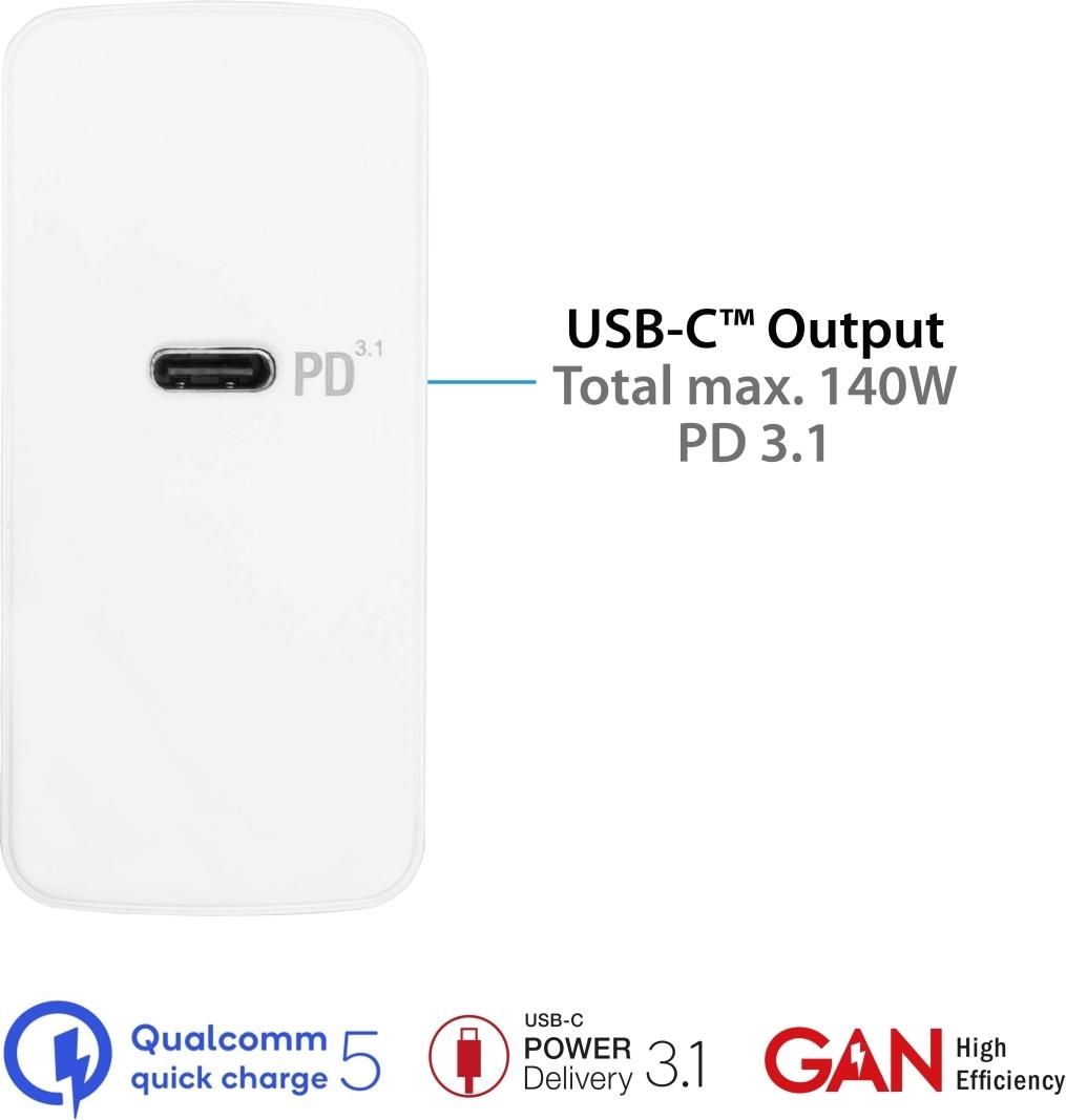 USB-Schnellladegerät 140W mit GaN-Technologie, 1-Port (USB-Câ„¢), PD 3.1, QC 5, PPS, inkl. 1,2m Ladeka (PCA-W005W)