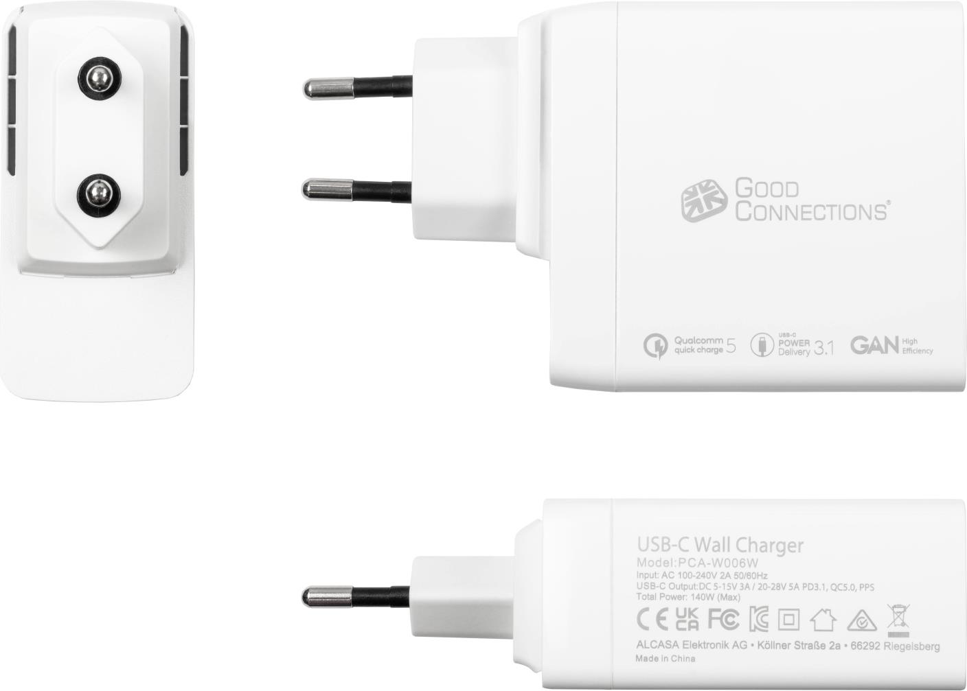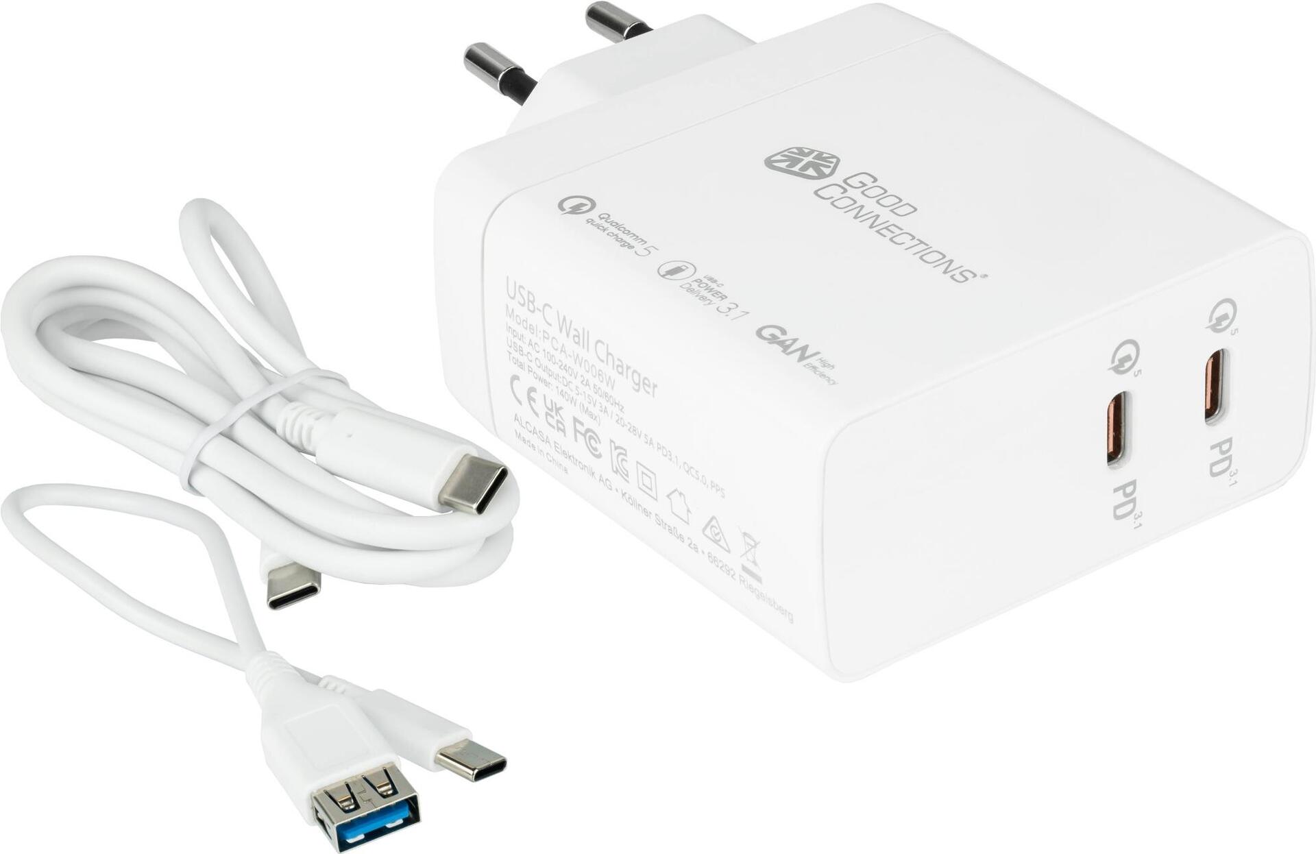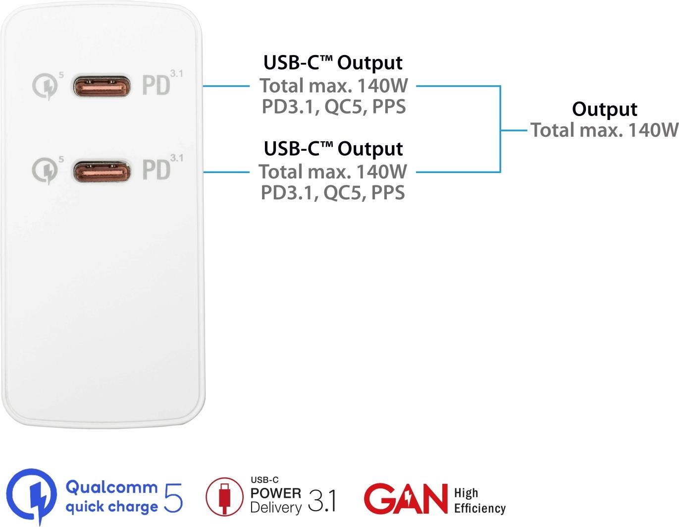 USB-Schnellladegerät 140W mit GaN-Technologie, 2-Port (2x USB-C™), PD 3.1, QC 5, PPS, weiß, Good Connections®Das Good Connections® USB-Schnellladegerät mit hochmoderner GaN-Technologie und neuester PD ...