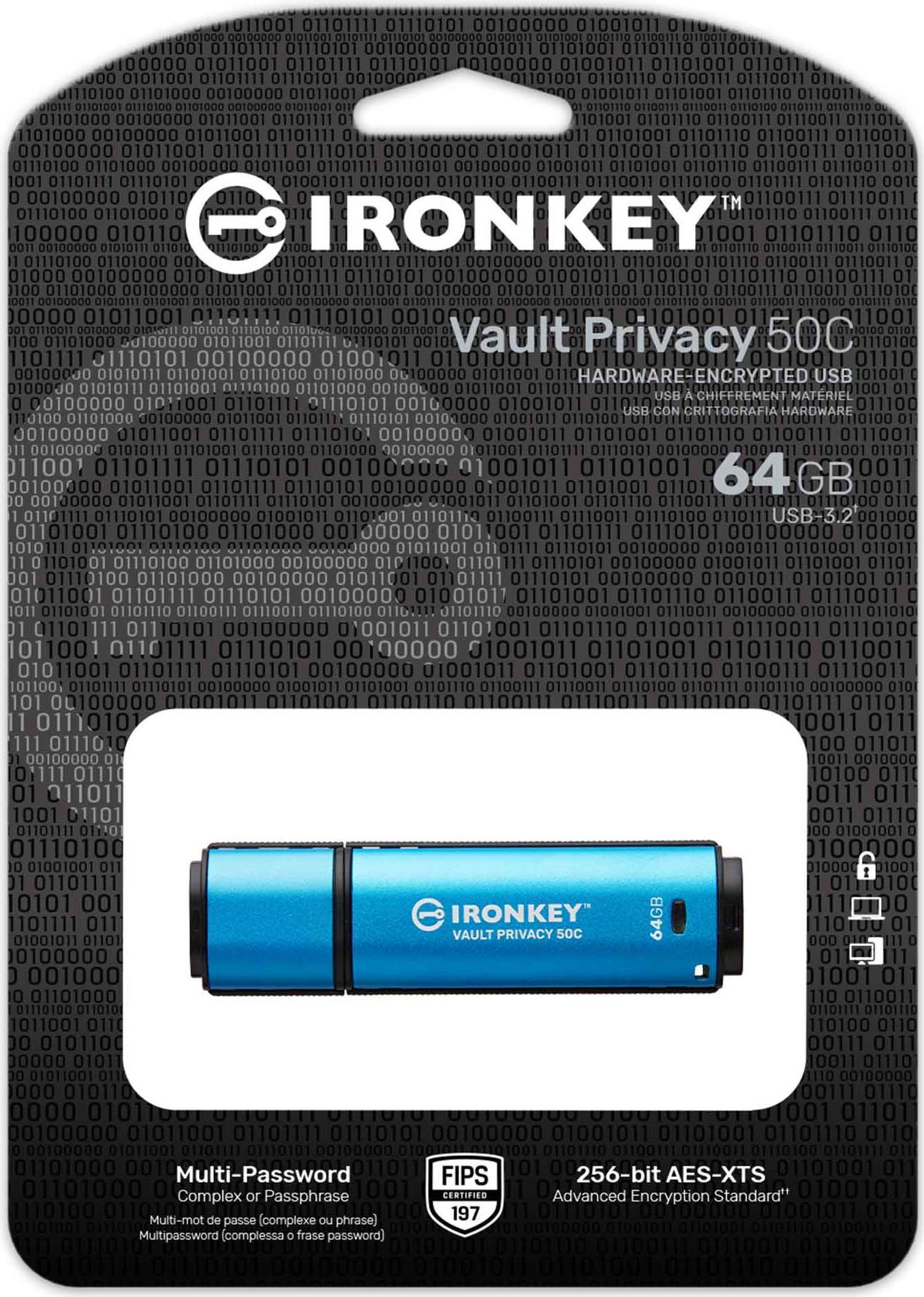 Die Kingston IronKey Vault Privacy 50 Serie umfasst hochwertige USB-A und USB-C - Sticks, die mit einer FIPS 197-zertifizierten AES-256-Bit-Hardwareverschlüsselung im XTSModus Sicherheit für Unternehmen bieten, einschließlich Schutzmaßnahmen gegen mit digital signierter Firmware und gegen Brute-Force-Passwortangriffe. Der VP50 wurde für Sicherheit auf Unternehmensniveau einem Penetrationstest unterzogen. Da es sich um verschlüsselte Speicher unter physischer Kontrolle des Benutzers handelt, bietet die VP50-Serie einen wesentlich besseren Datenschutz als das Internet oder Cloud-Dienste. Der Vault Privacy 50 unterstützt die Multi-Passwort-Option mit Komplex- oder Passphrasen-Modi. Dadurch lässt sich der Zugriff auf die Daten besser wiederherstellen, wenn eines der Passwörter vergessen wurde. Mit dem herkömmlichen Komplexmodus sind Passwörter mit 6 bis 16 Zeichen unter Verwendung von 3 von 4 Zeichensätzen zulässig. De Passphrase-Modus unterstützt numerische PINs, Sätze, Wortlisten oder sogar Liedtexte mit 10 bis 64 Zeichen. Der Administrator kann ein Benutzer- und ein einmaliges Wiederherstellungspasswort aktivieren oder zur Wiederherstellung des Datenzugriffs das Benutzerkennwort zurücksetzen. Zur Erleichterung der Passworteingabe kann das "Auge"-Symbol aktiviert werden, sodass das eingegebene Passwort angezeigt wird, was für weniger Tippfehler und somit für weniger fehlgeschlagene Anmeldeversuche sorgt. Der Brute-ForceAngriffsschutz sperrt Benutzer- oder einmalige Wiederherstellungspasswörter nach 10 ungültigen, hintereinander eingegebenen Passwörtern und kryptolöscht nach 10-maliger fehlerhaften Eingabe hintereinander den USB-Stick. Zum Schutz vor potenzieller Malware auf nicht vertrauenswürdigen Systemen können sowohl der Administrator als auch der Benutzer den Schreibschutz für den USB-Stick aktivieren. Außerdem schützt die integrierte virtuelle Tastatur Passwörter vor Key- und Screenloggern. Unternehmen können die USB-Sticks der VP50 Serie mit einer Produkt-ID (PID) für die Integration mit Standard-Endpoint-Management-Software anpassen und konfigurieren und somit die IT- und Cybersicherheits-Anforderungen des Unternehmens mithilfe von Kingstons Personalisierungsprogramm erfüllen. Kleine und mittlere Unternehmen können die Admin-Rolle zur lokalen Verwaltung ihrer USB-Sticks verwenden, z.B. zum Konfigurieren oder Zurücksetzen von Benutzer- oder einmaligen Wiederherstellungs-Passwörtern von Mitarbeitern, zur Wiederherstellung des Datenzugriffs auf gesperrten USB-Sticks und zur Einhaltung von Gesetzen und Vorschriften, wenn forensische Untersuchungen erforderlich sind. Der Vault Privacy 50 ist wasserdicht gemäß IPX84, TAA-konform und wird in den USA montiert.