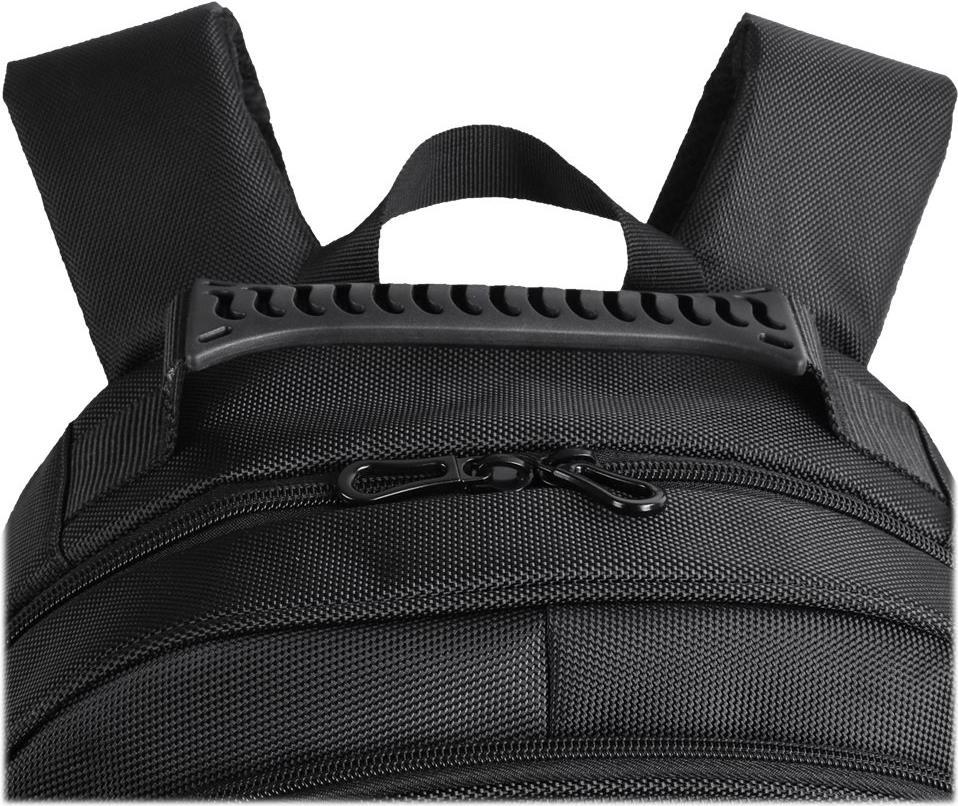 Der Professional Notebook-Rucksack für 16-Zoll-Notebooks ist elegant, langlebig und aus wetterfestem Material gefertigt. Der Rucksack verfügt über ein gepolstertes Notebookfach, in dem Ihre Geräte sicher transportiert werden können. Der gepolsterte Griff und die gepolsterte Rückseite des Rucksacks machen ihn bequem, egal wie Sie ihn tragen. Der Rucksack verfügt über drei Reißverschlussfächer: ein Fach für Bücher oder Kleidung, ein Fach, das als Organizer/zur Aufbewahrung von Büromaterial dient, und ein externes Fach mit Schnellzugriff für die am häufigsten verwendeten Gegenstände. Außerdem verfügt er über zwei Flaschenhalter, damit Sie die Hände frei haben, um zu reisen.